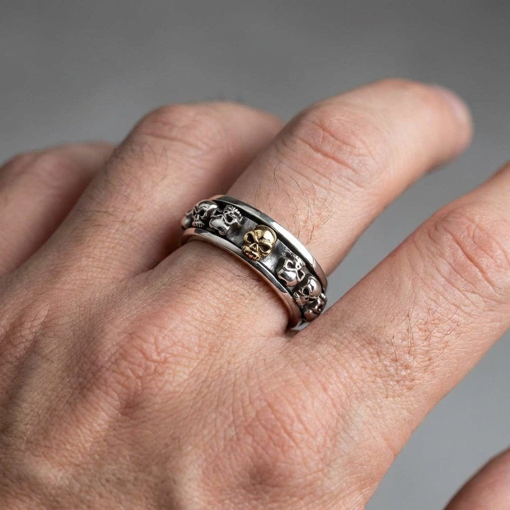 Si vous portez des bijoux tête de mort au quotidien et que vous voulez une bague qui reste fascinante heure après heure, elle est pour vous. Il s'agit d'une bague gothique rotative pour homme destinée à un usage quotidien, qui conserve toute l'élégance d'un véritable bijou, que votre main repose sur un comptoir ou sur un guidon.
