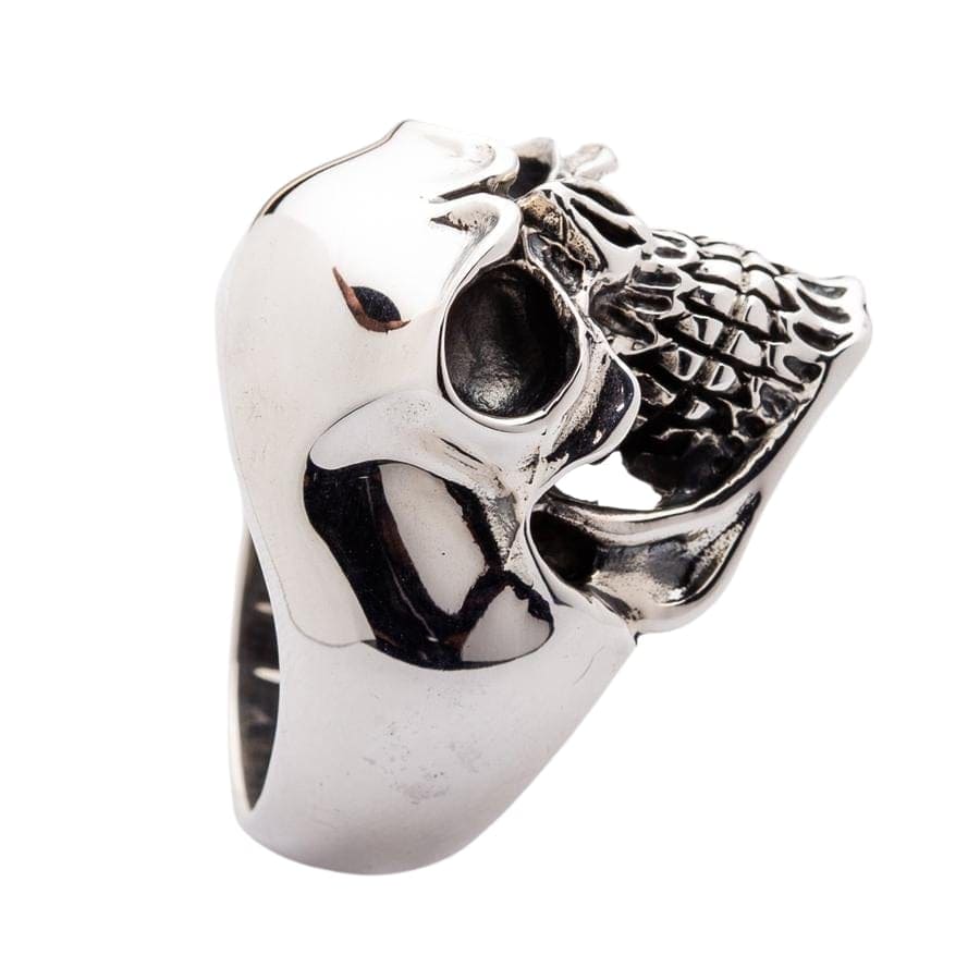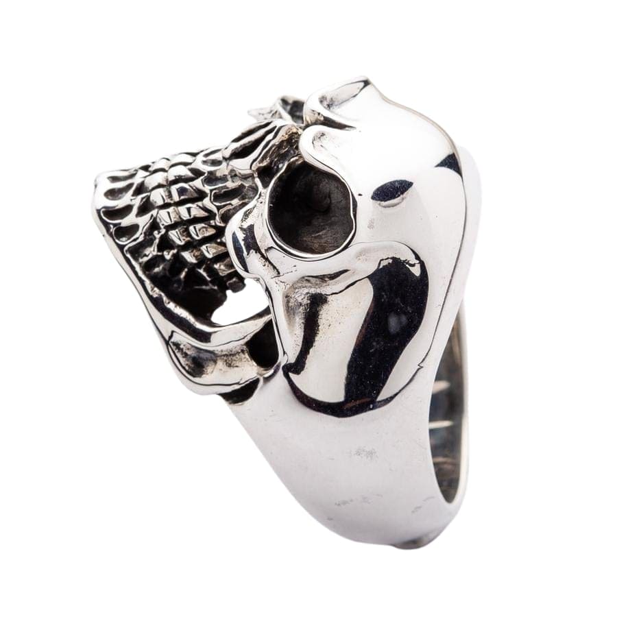 Qui a dit que la mort n'avait pas d'humour ? Notre bague Crâne Rieur est une déclaration de défi audacieuse, un bijou de motard pour l'homme qui rit face au danger. Fabriquée à la main avec expertise dans un imposant bloc d'argent sterling massif, cette bague affiche un sourire maniaque à la fois troublant et résolument cool.