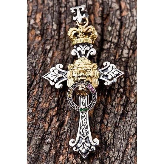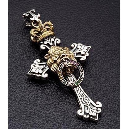 Pendentif croix du Lion de Juda en argent sterling