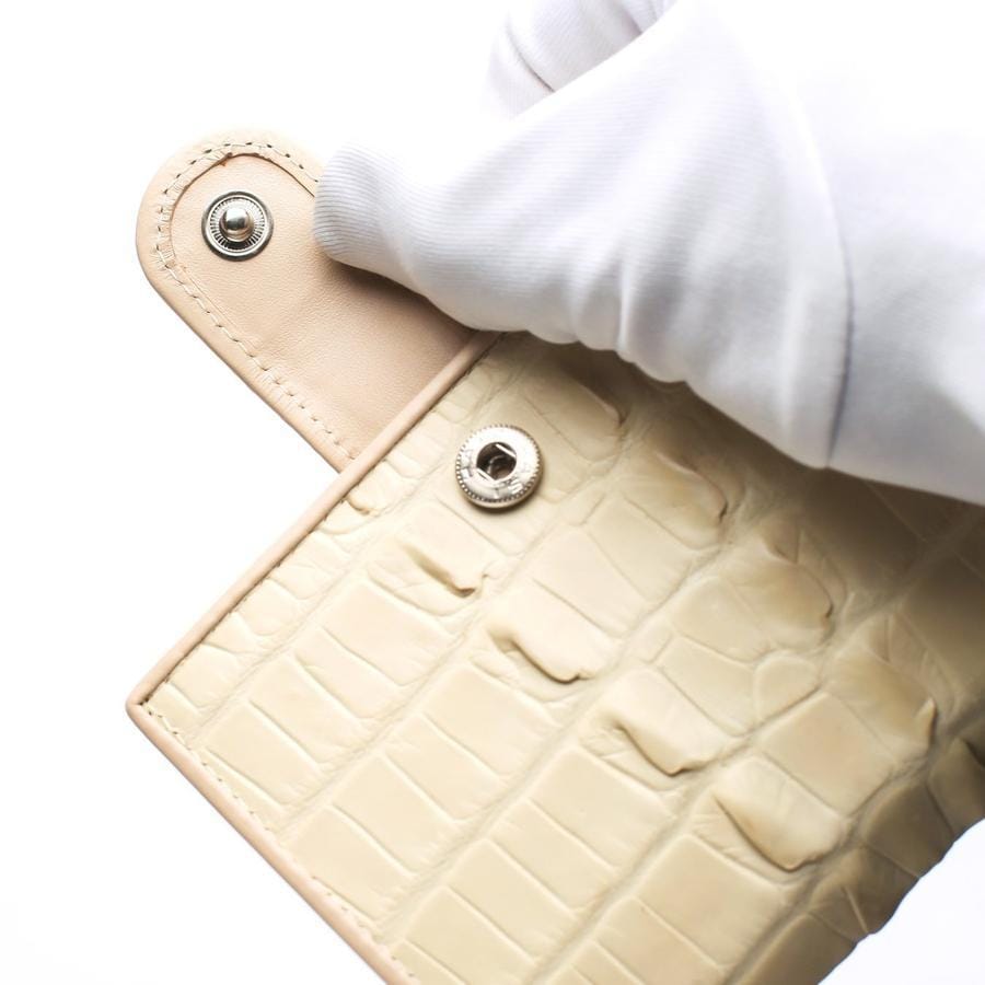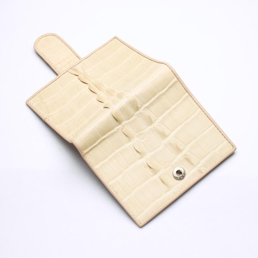 Offrez-vous une élégance intemporelle avec notre portefeuille femme en cuir de crocodile blanc nacré. Fabriqué à la main par nos artisans qualifiés, ce portefeuille est confectionné en cuir de crocodile véritable de première qualité, d'une élégante teinte crème nacrée, gage de durabilité et de style. Chaque pièce est moulée individuellement à la main et minutieusement cousue à la perfection, garantissant une qualité luxueuse et une utilisation quotidienne.