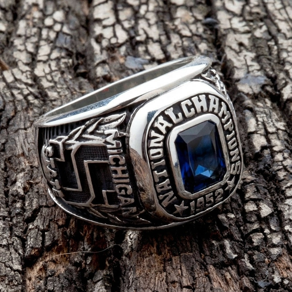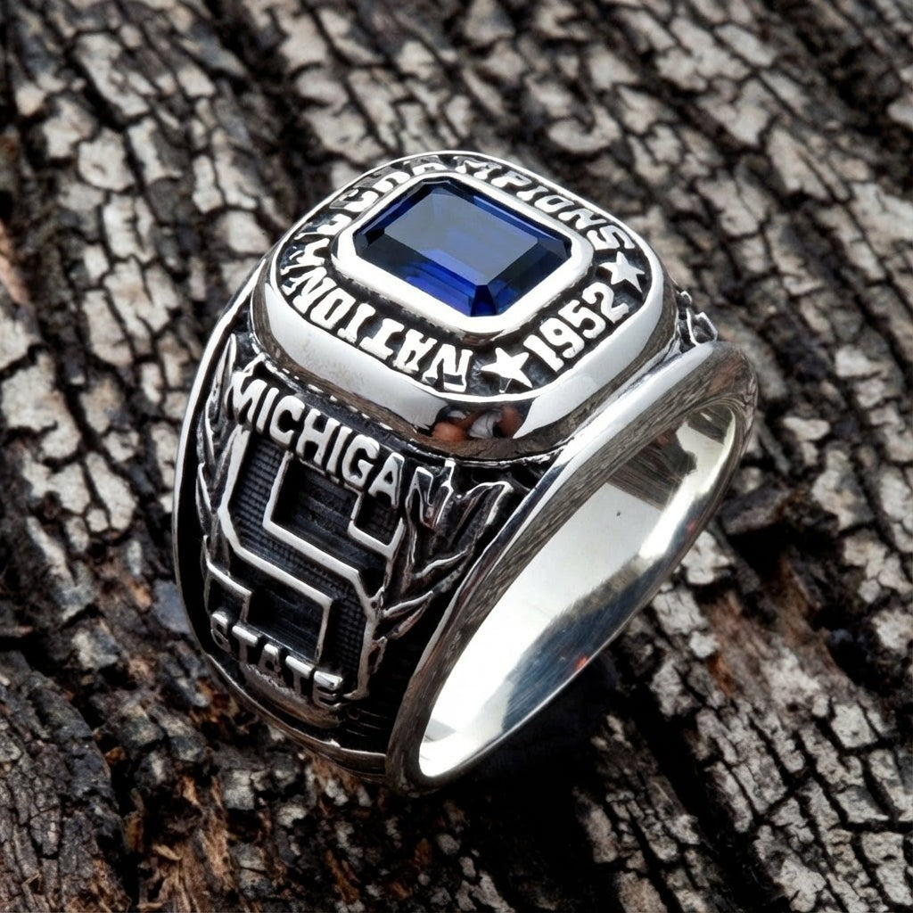 Celebrate a historic victory with our 1952 Michigan State "National Champions" Ring. This isn't just a ring; it's a piece of collegiate history, meticulously handcrafted from solid 925 sterling silver. It’s a bold, vintage-style tribute to one of the greatest teams in NCAA football history.