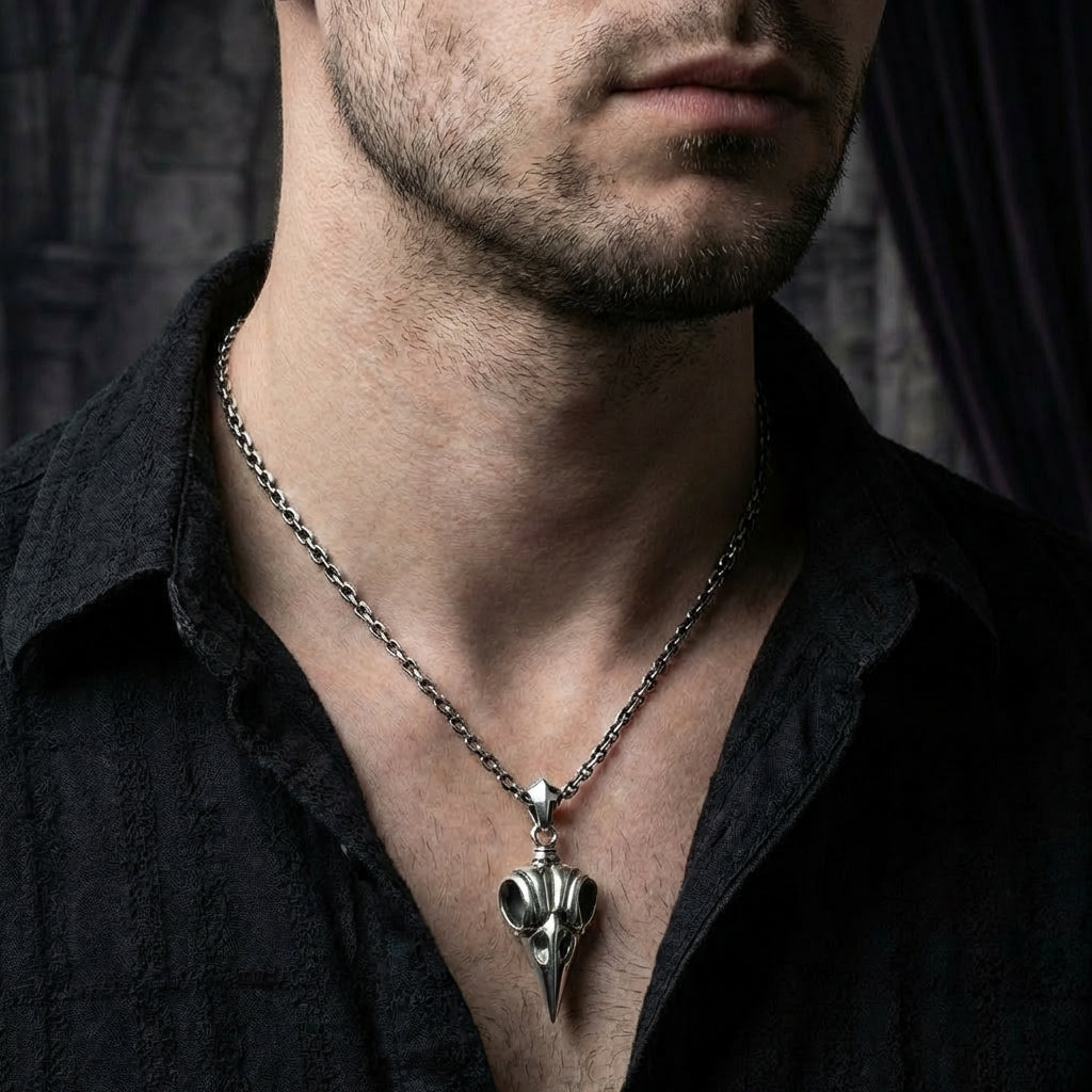 क्रो स्कल बोन स्टर्लिंग सिल्वर गॉथिक पेंडेंट