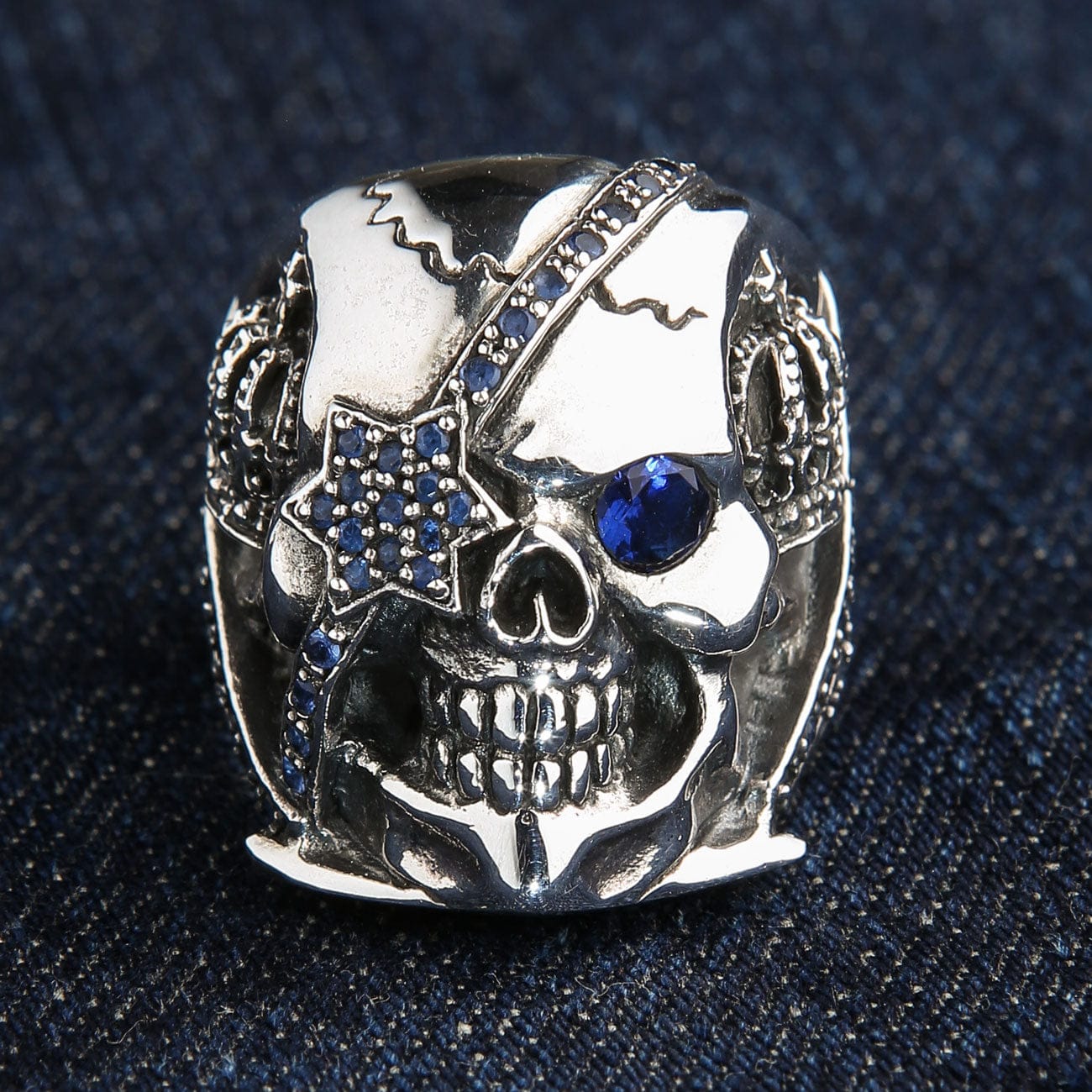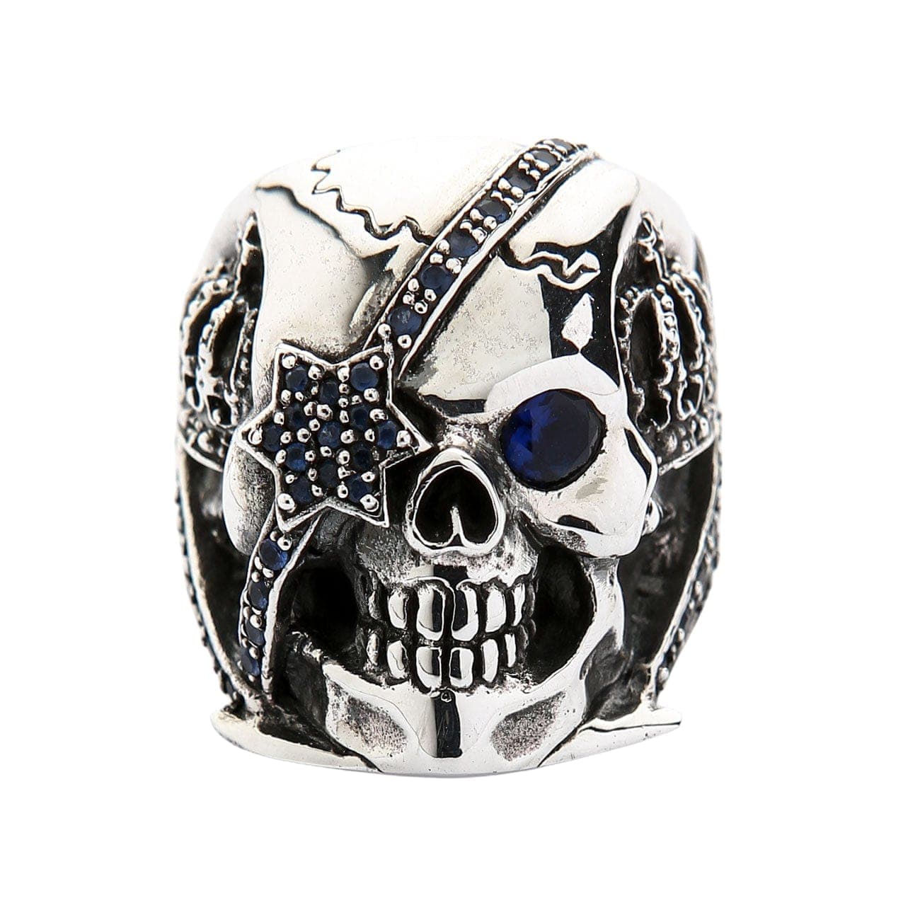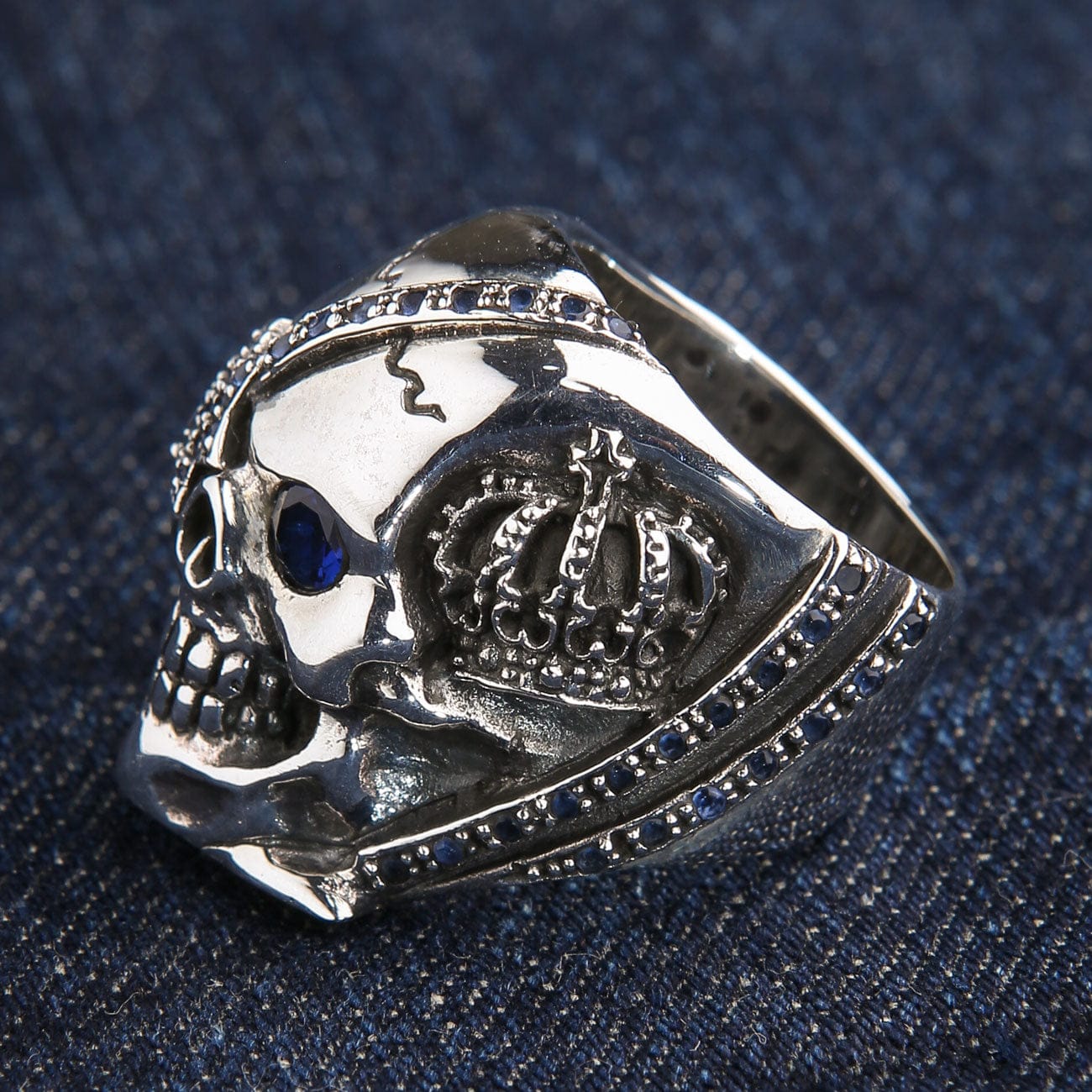 स्टर्लिंग सिल्वर सफायर क्राउन पाइरेट स्कल रिंग्स