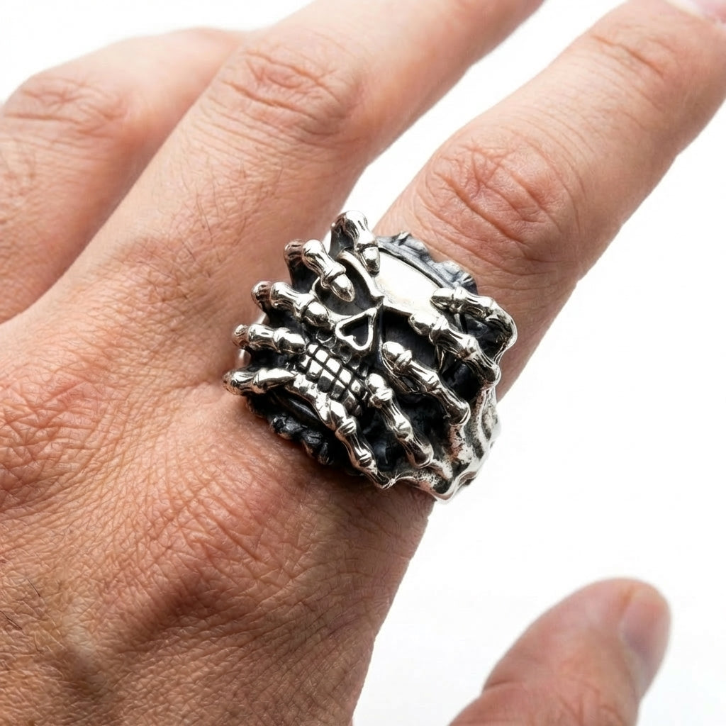 यदि आप राइडर हैं और एक भारी sterling silver skull ring चाहते हैं जो तेज़ रफ्तार में भी अपनी जगह न छोड़े — तो यह विशेष रूप से आपके लिए बनाई गई है। 25 grams के वजन के साथ, यह घूमती नहीं है। इसका चेहरा इतना बड़ा है कि दूर से भी स्पष्ट दिखाई दे। और इसका कंकाल वाला बैंड पूरी तरह चारों ओर से लिपटा हुआ है, इसलिए आपकी हथेली की तरफ कोई खाली हिस्सा नहीं है जो चुभे।