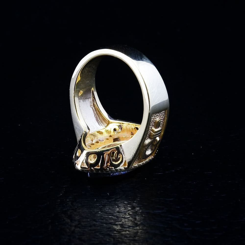 Q: How do I care for my gold-plated sterling silver ring? A: To maintain the beautiful 14K gold finish on your sterling silver bishop ring, we recommend avoiding direct contact with harsh chemicals, lotions, and perfumes. Clean it gently with a soft, dry cloth and store it separately in a jewelry box to prevent scratches and preserve its luster.