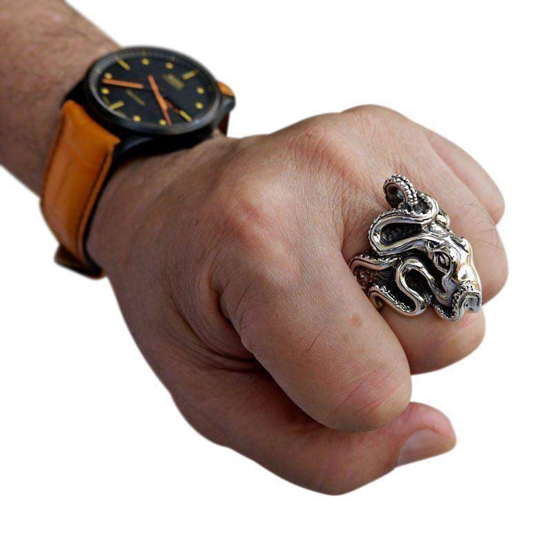 Q: With its large size, is the ring comfortable for daily wear? A: Despite its large size and weight, the ring is designed for comfort. The interior of the band is polished smooth, and the tentacles are sculpted to wrap around the finger in a way that minimizes snagging, making it surprisingly comfortable for such a bold statement piece.