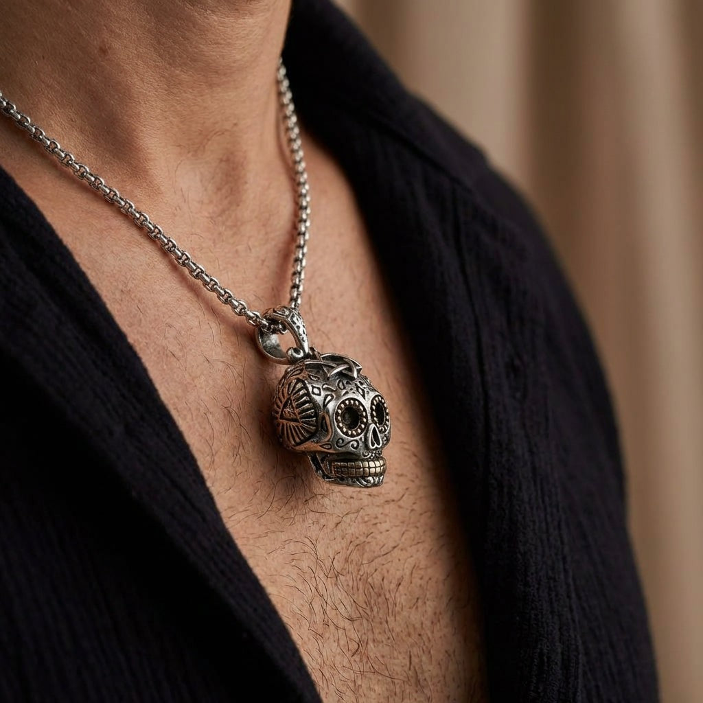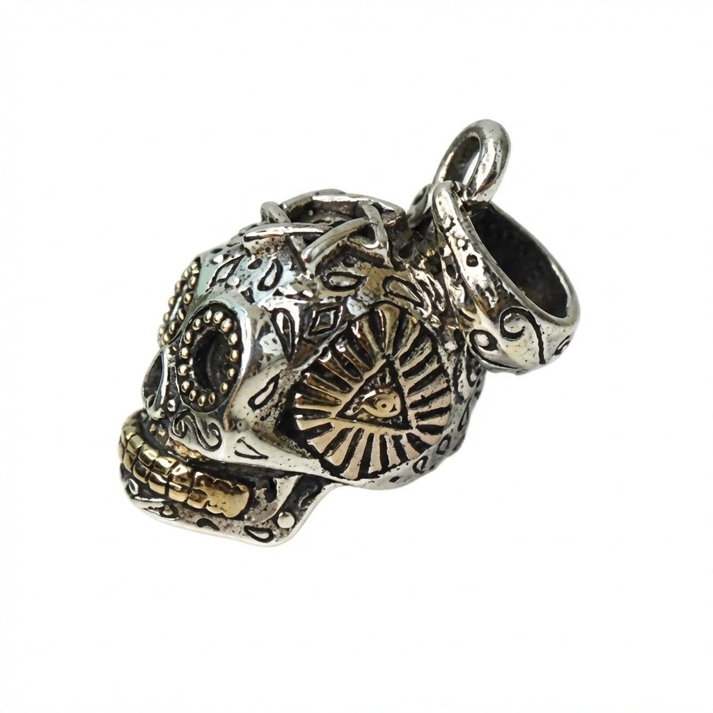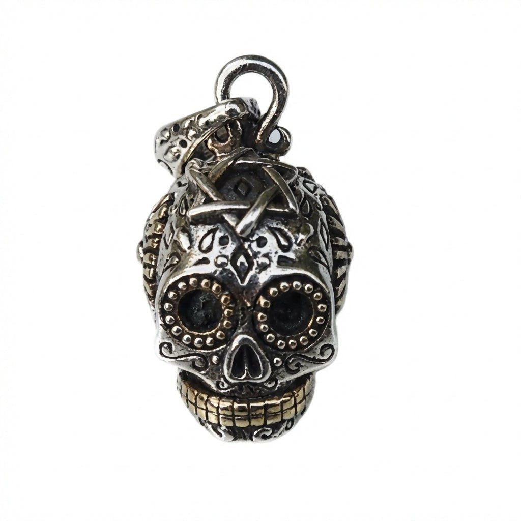 स्टर्लिंग सिल्वर ब्रास शुगर स्कल स्टीमपंक पेंडेंट