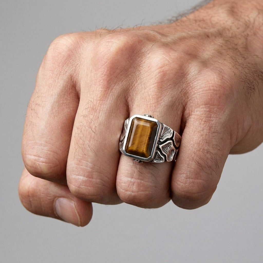 टाइगर्स आई 925 स्टर्लिंग सिल्वर पुरुषों की अंगूठी