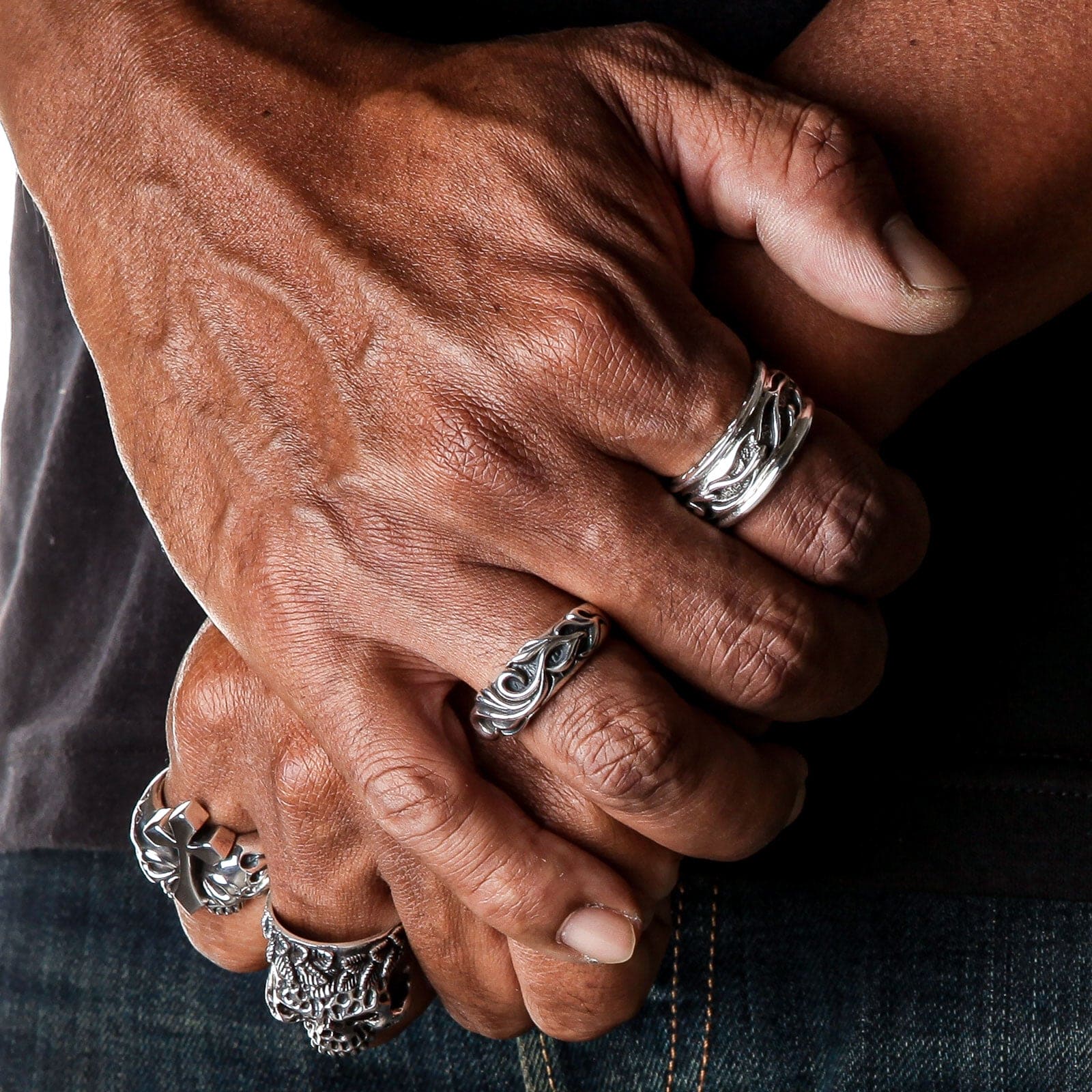 आदिवासी स्टर्लिंग सिल्वर पुरुषों की बैंड रिंग – दमदार, मजबूत और शाश्वत