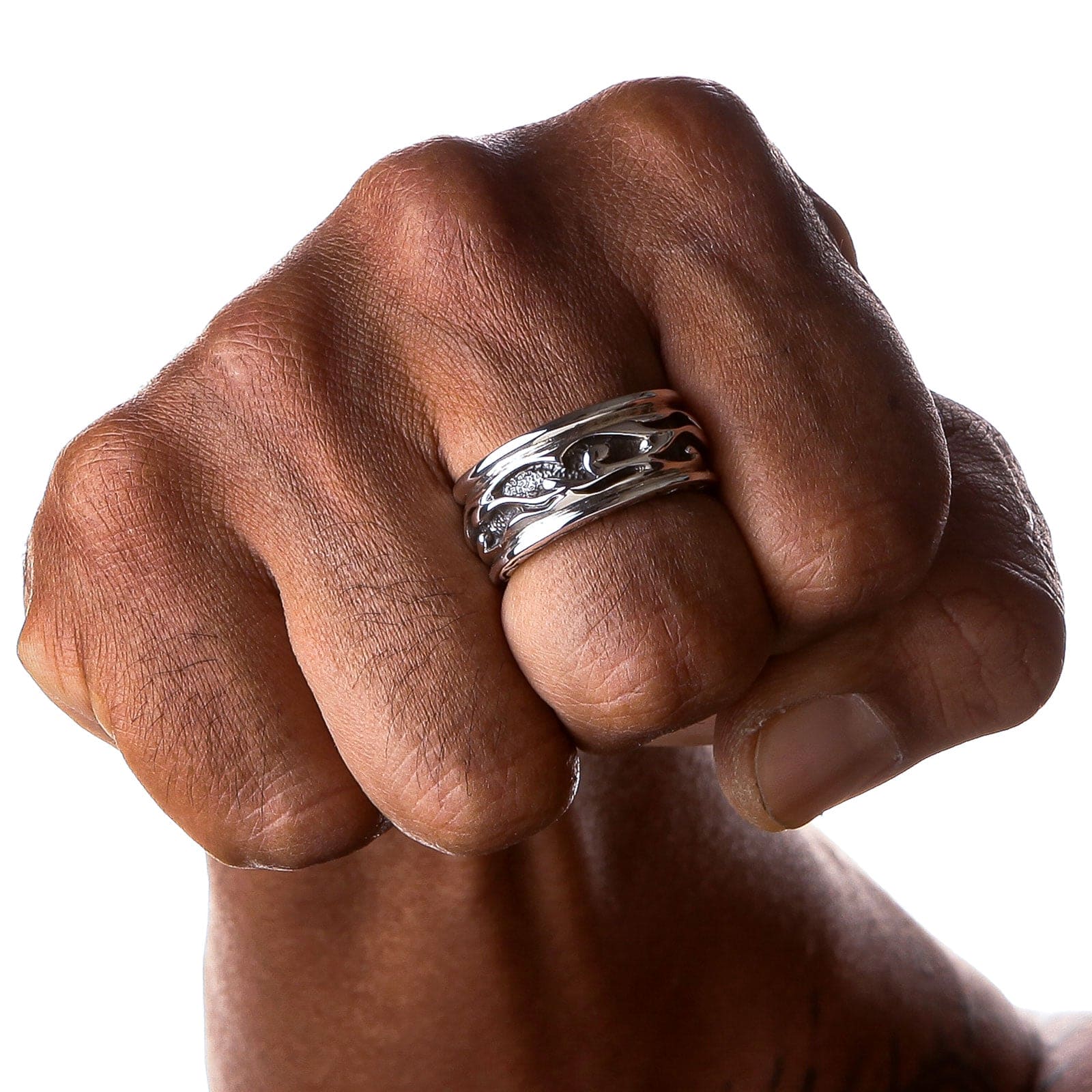 💥 अपने अंदर के योद्धा को आज़ाद करें—अपनी ट्राइबल स्टर्लिंग सिल्वर पुरुषों की बैंड रिंग आज ही पाएं! 🛡️🔥