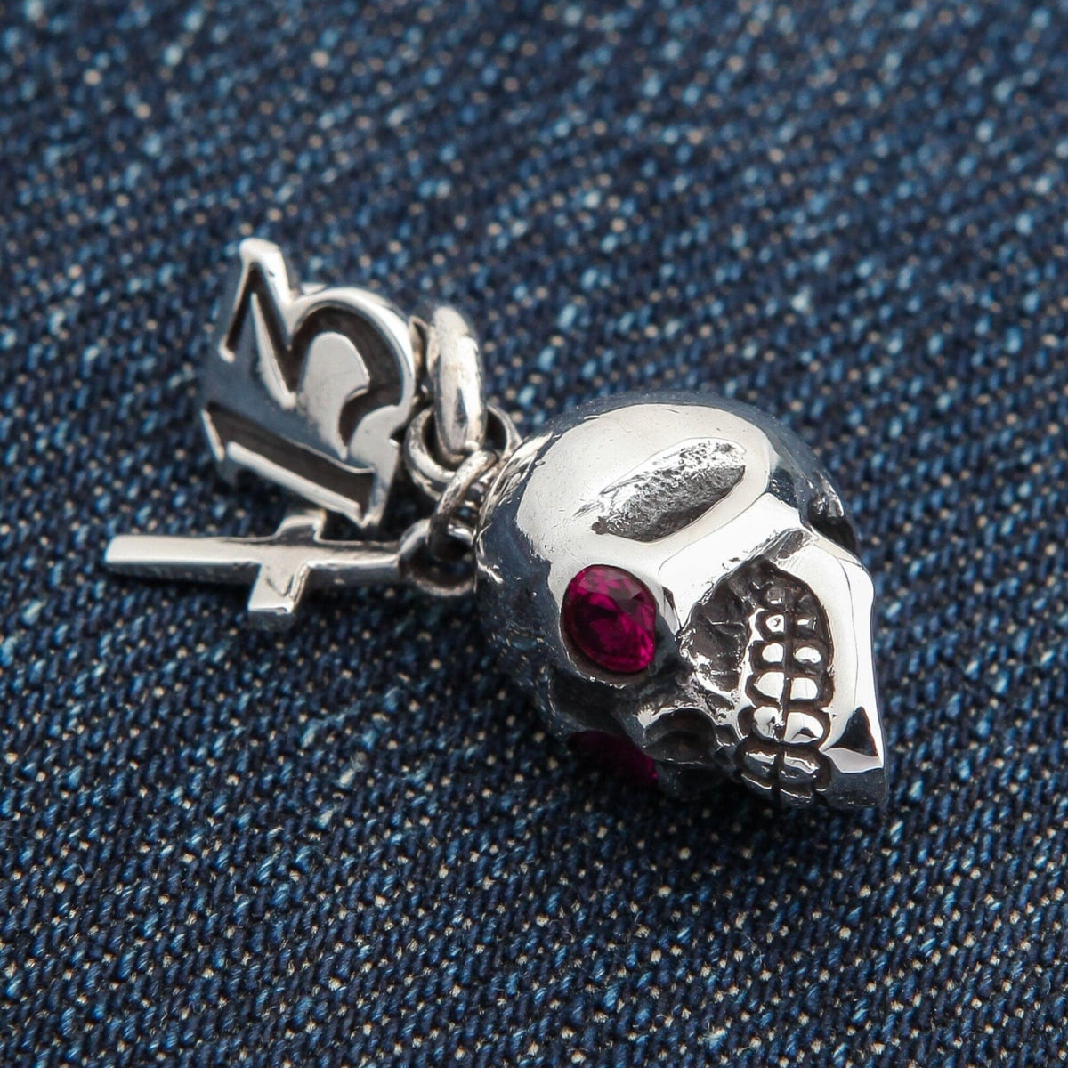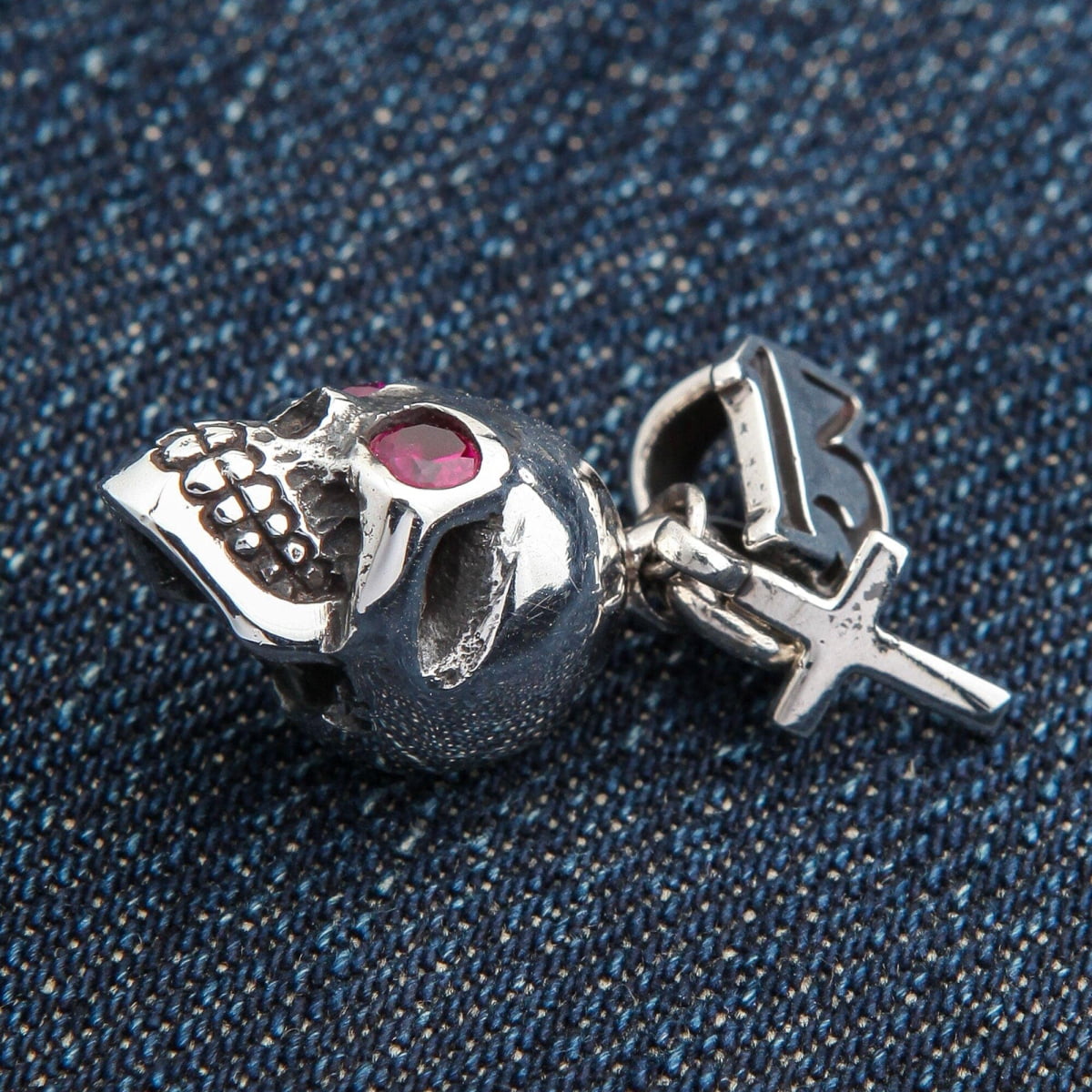 Sterling ezüst 13-as számú koponya medál kereszttel