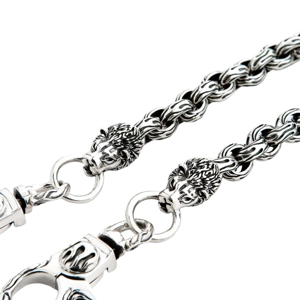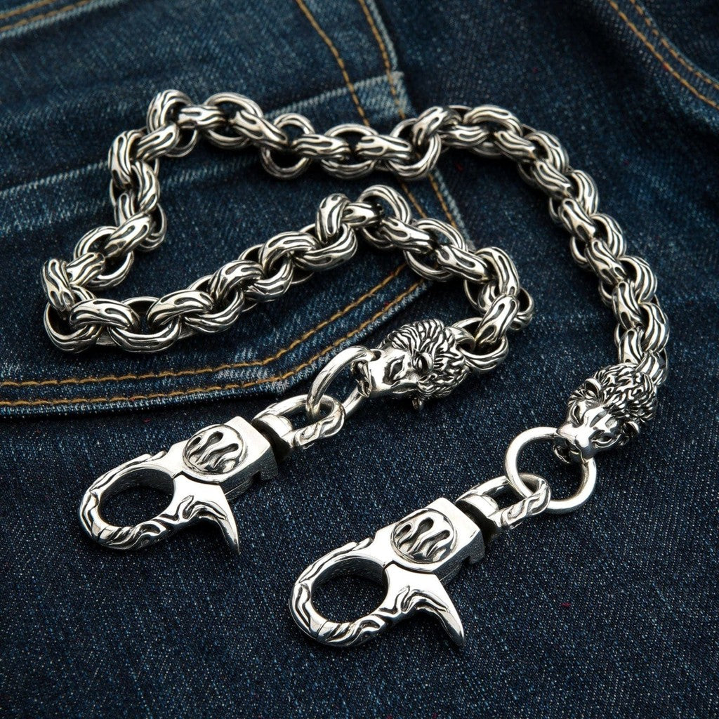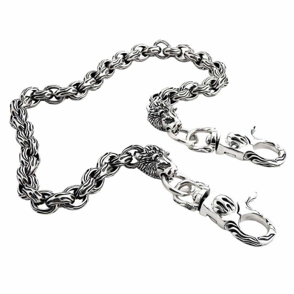 Masszív sterling ezüst oroszlánfejes pénztárcalánc