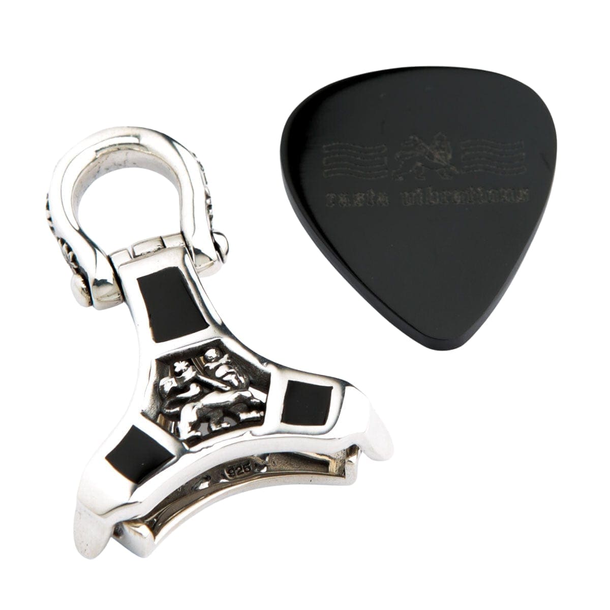 2. Megtartja ez a medál a pengetőmet biztonságosan? Igen, erős, precízen kialakított ezüst fogókkal készült, amelyek a legtöbb standard méretű pengetőt stabilan tartják. Úgy terveztük, hogy a pengető a mindennapi használat során is biztonságban legyen.