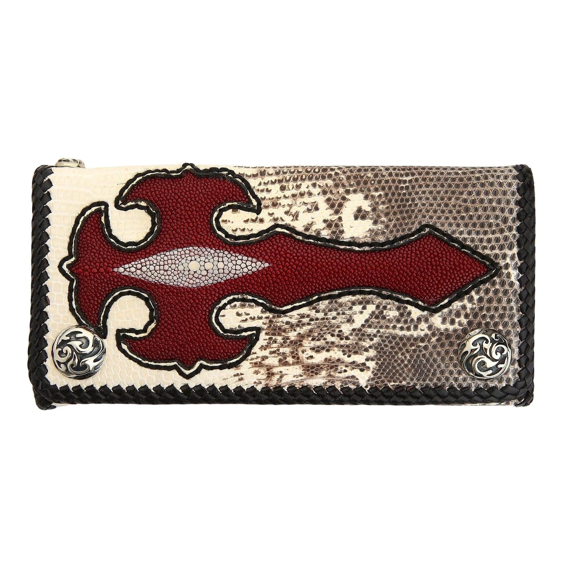 Emeld magasabb szintre motoros stílusod a Rája Kereszt Gyíkbőr Hosszú Motoros Háromszoros Pénztárcánkkal! Kézzel készült egzotikus anyagokból, ez a pénztárca lenyűgöző gyík- és rájabőr kombinációval, erős marhabőr betétekkel rendelkezik, így garantált az egyedi megjelenés és a kivételes tartósság. A különleges piros rája kereszt, amelyet a gyíkbőr textúrája emel ki, igazán egyedi vizuális hatást kelt. Praktikus kialakításának köszönhetően hat bankkártyatartó, három tágas papírpénztartó és egy biztonságos patentos rekesz is helyet kapott benne, így minden szükséges dolgod rendezetten és könnyen elérhetően tárolható. A lángmintás sterling ezüst patentok és a lánc rögzítésére szolgáló fémgyűrű tovább fokozzák a funkcionalitást, miközben motoros hangulatot is kölcsönöznek neki. Zárt állapotban 19 x 9,5 cm-es méretével tökéletesen elfér zsebben vagy motoros mellényben, így elengedhetetlen kiegészítője a merész stílusnak.