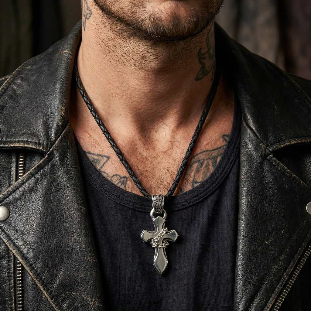 - 🔗 Chain-Wrapped Design: A unique aesthetic where a miniature silver chain entwines the cross, symbolizing unbreakable strength and gothic flair.