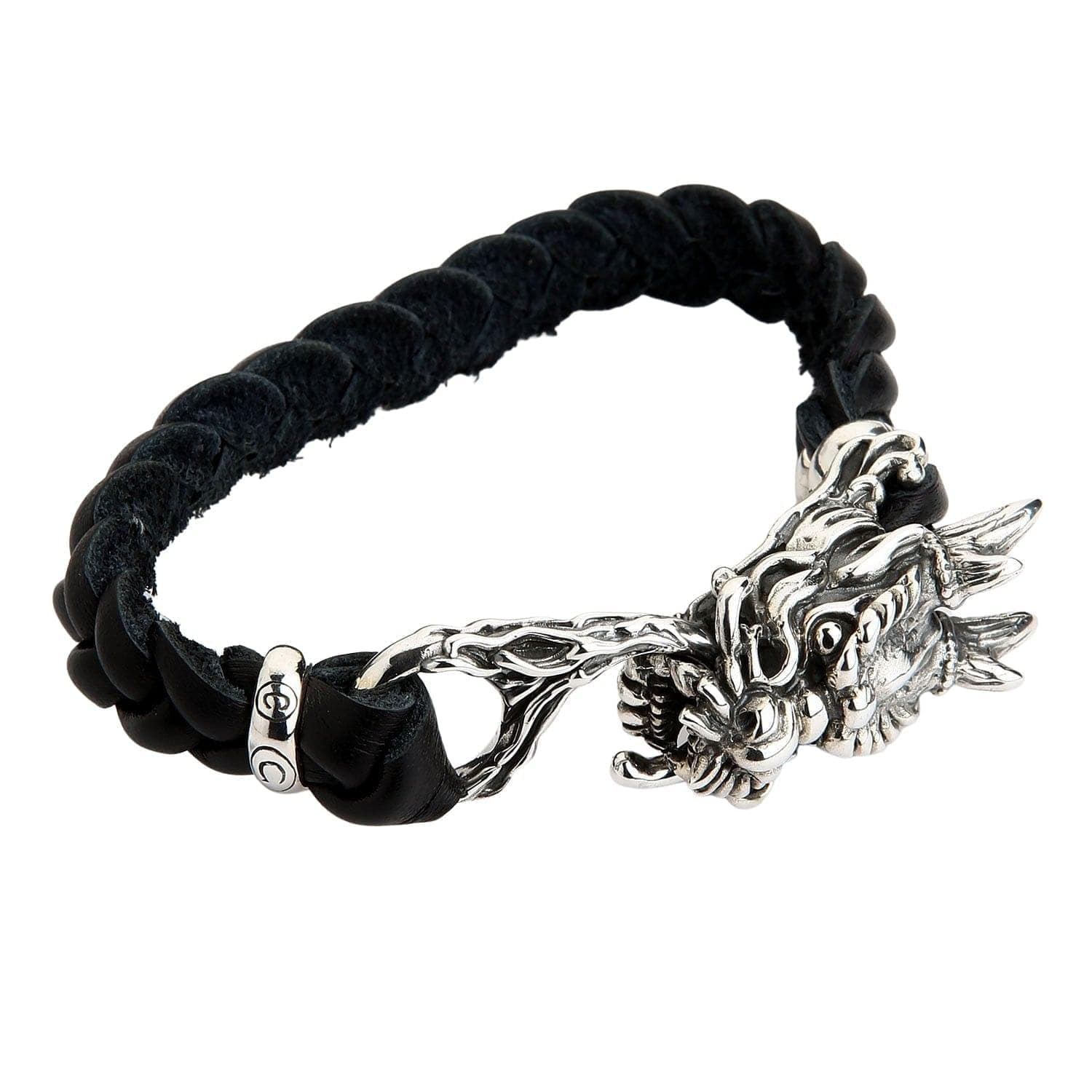Dragon Head Braided Leather Bracelet by Bikerringshop
