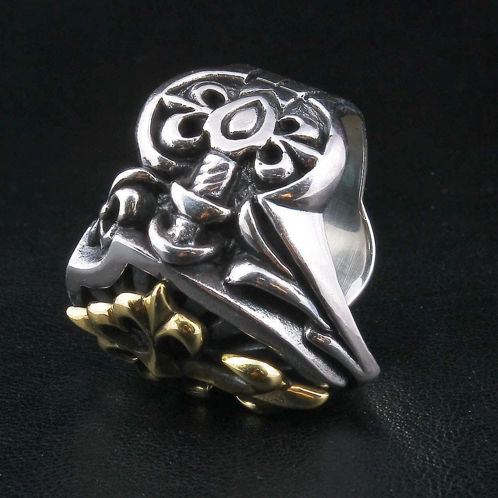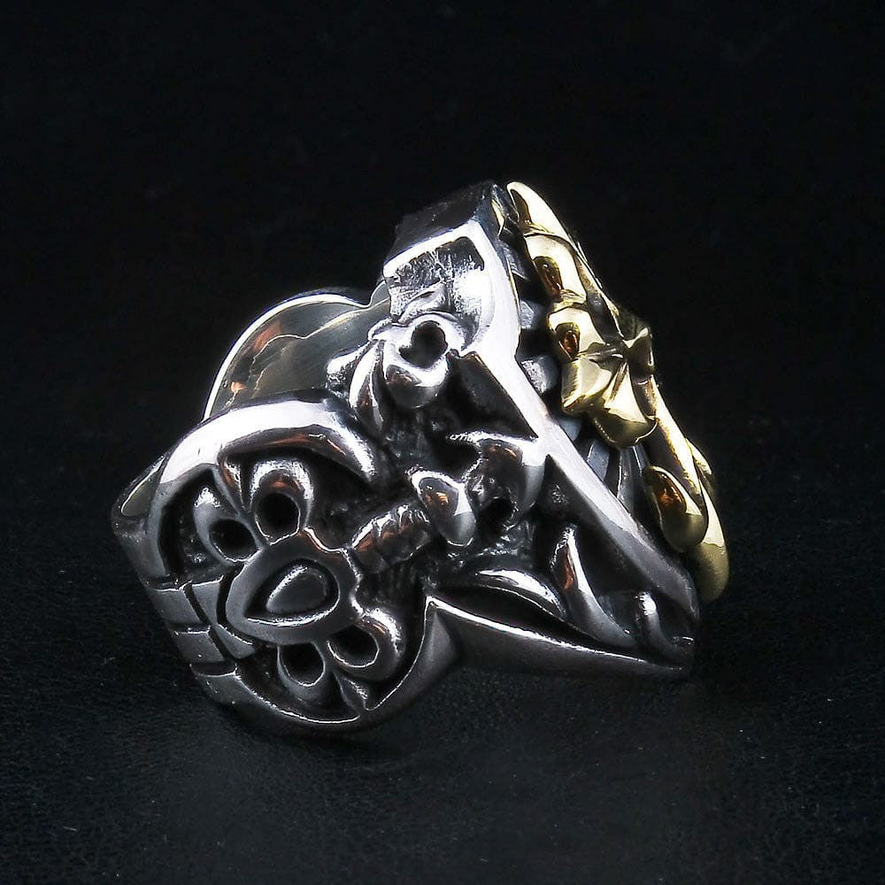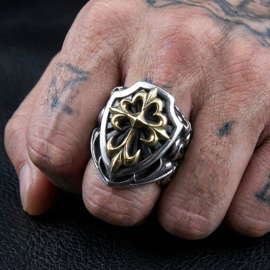 Anello da uomo grande in argento sterling con croce in oro giallo