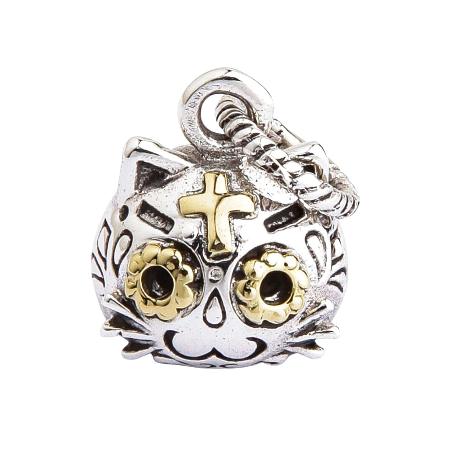 Il ciondolo gatto in argento sterling unisce il fascino dell’arte gotica alla grazia dei motivi felini. Gli occhi grandi ed espressivi del gatto sono incorniciati da dettagli floreali, mentre una piccola croce dorata sulla fronte aggiunge un tocco simbolico e di contrasto. L’incisione esperta mette in risalto il pelo e i tratti del muso, donando a questo piccolo ciondolo una profondità e una texture sorprendenti.