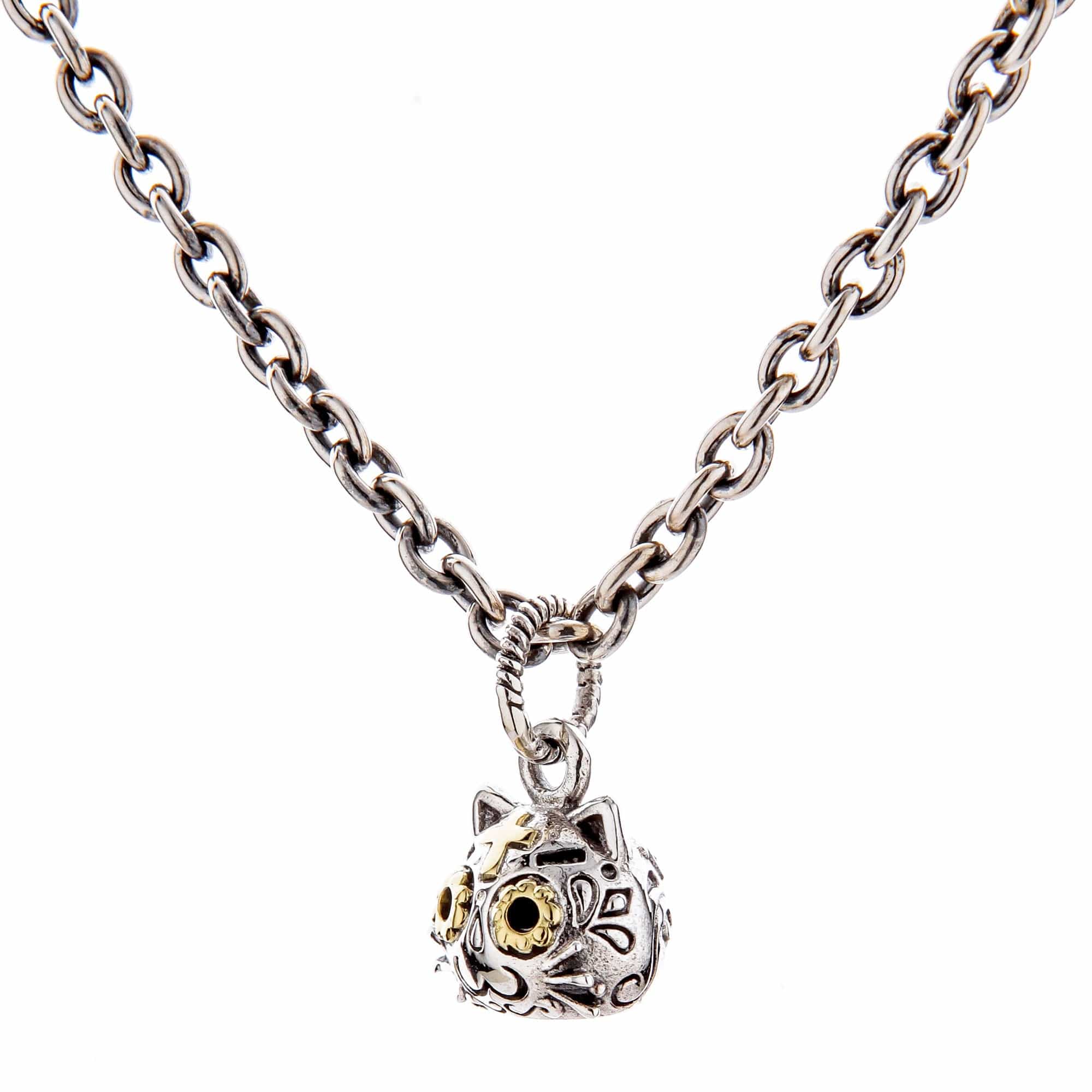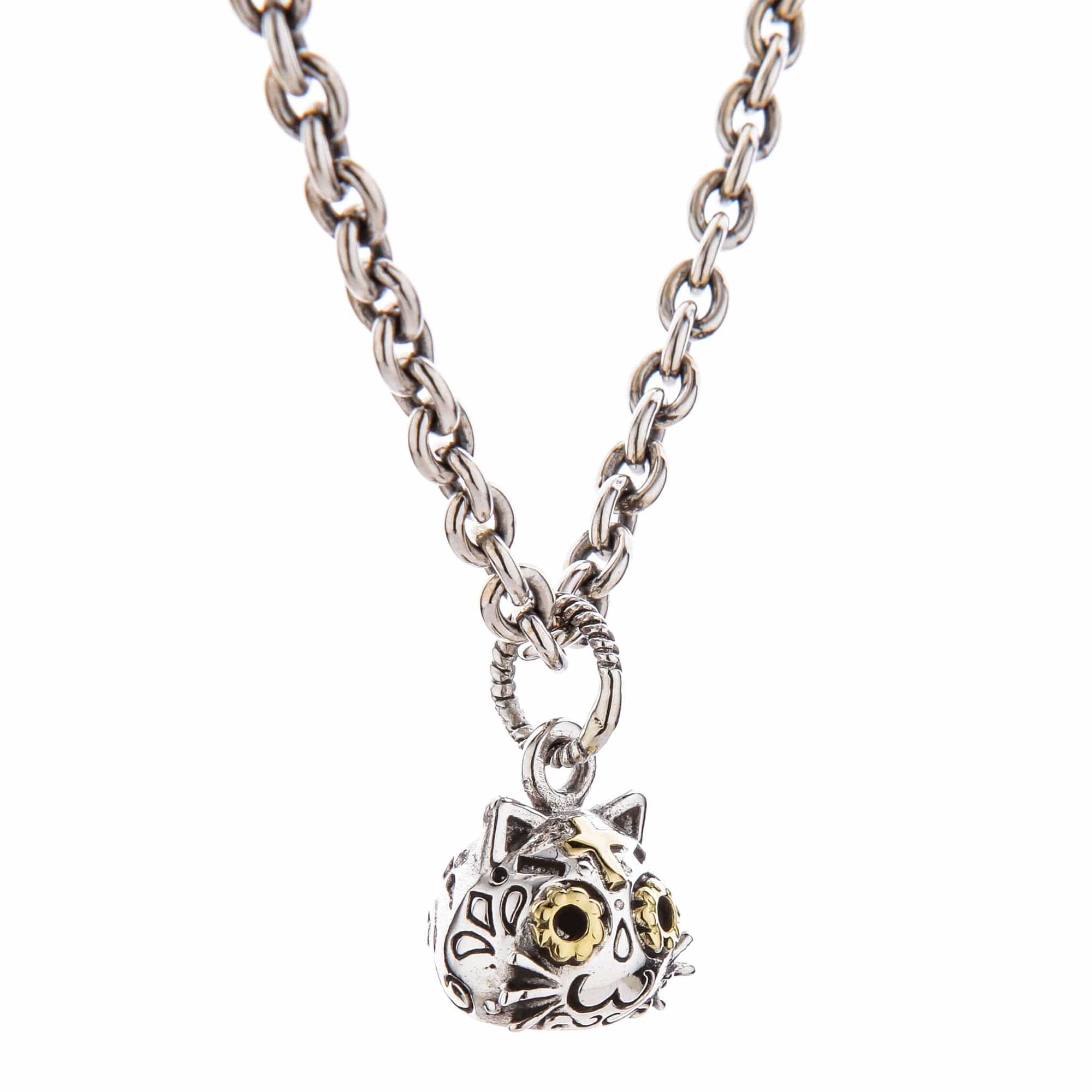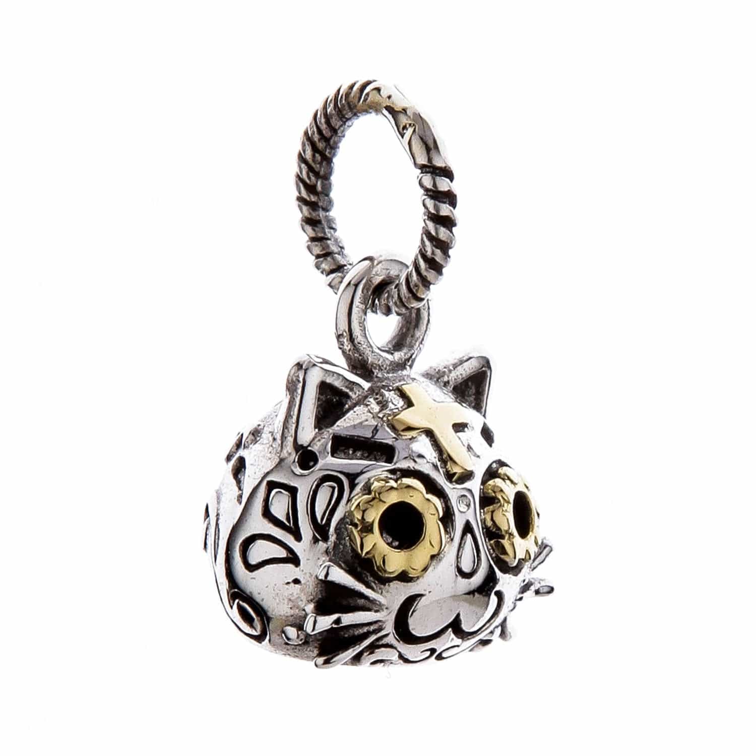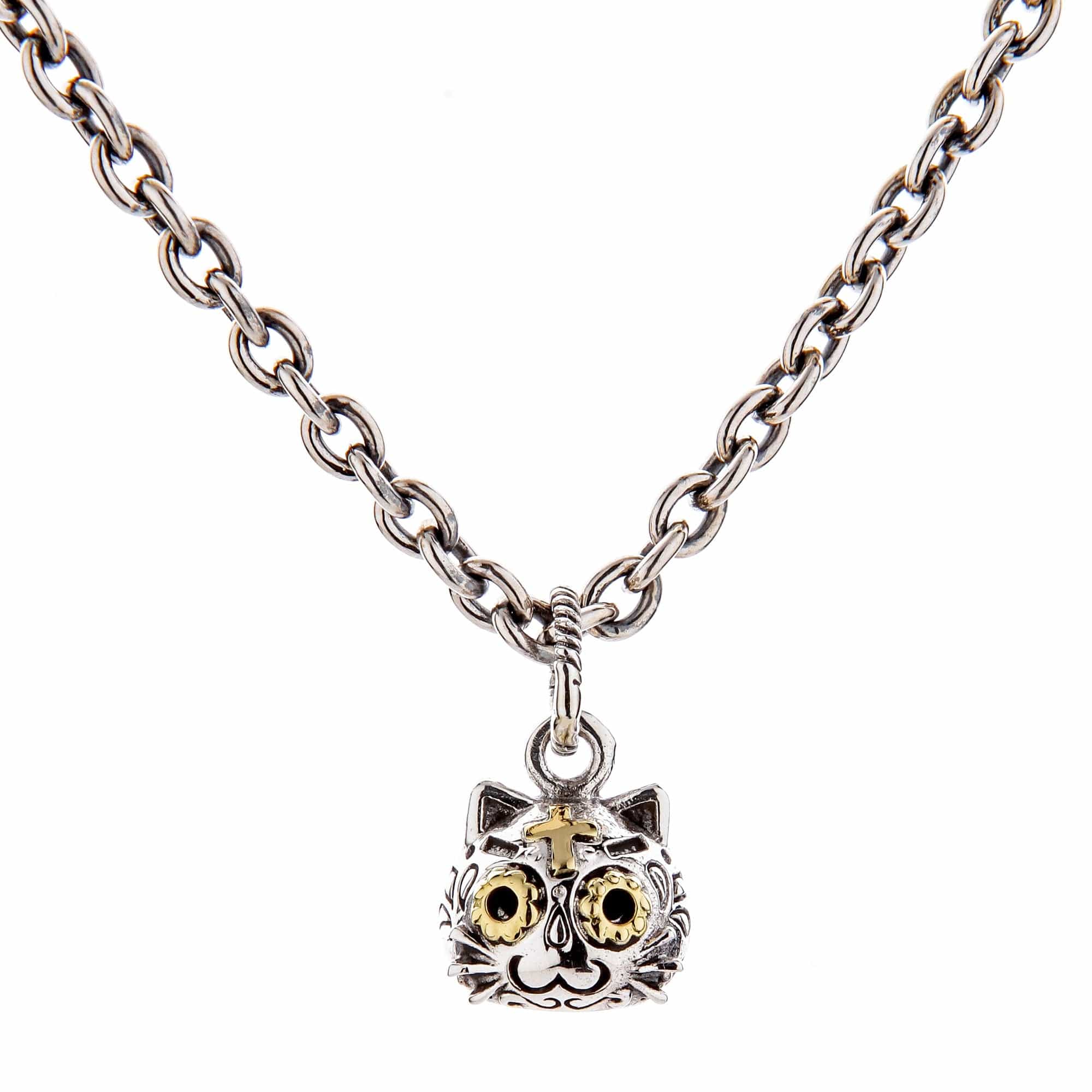 Ciondolo Gatto Gotico – Gioiello Gatto in Argento Sterling con Dettaglio Dorato