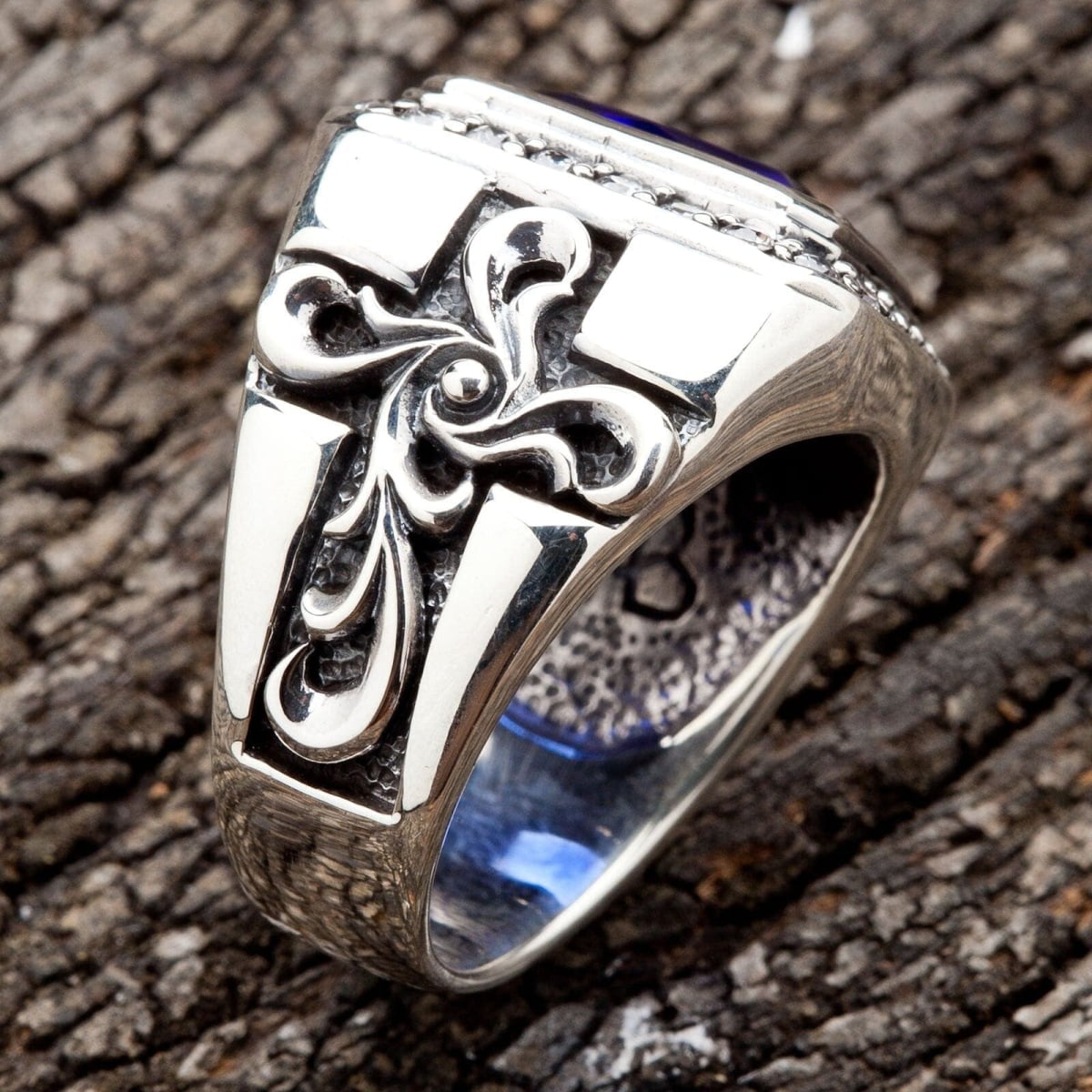 Canalizza lo spirito audace di un re medievale con questo magnifico Anello Croce Gotica da Uomo. Non è solo un accessorio, ma una dichiarazione di potere: un’opera d’arte da indossare che unisce simbolismo sacro ed eleganza regale. Sormontato da una profonda pietra blu zaffiro e forgiato in pesante argento sterling, questo anello è per l’uomo che sa imporsi.