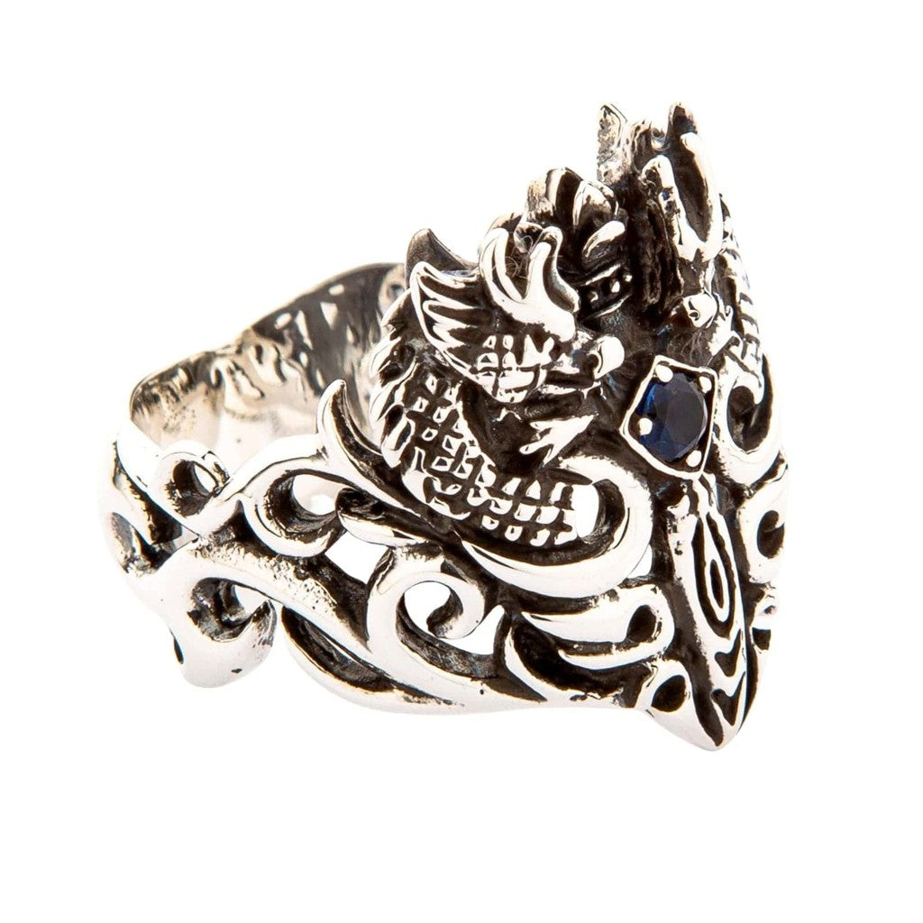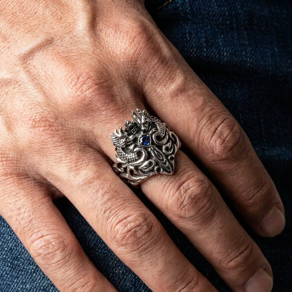 🐉⚔️ ブルーストーン ケルトドラゴン スターリングシルバー 中世ゴシック メンズリング