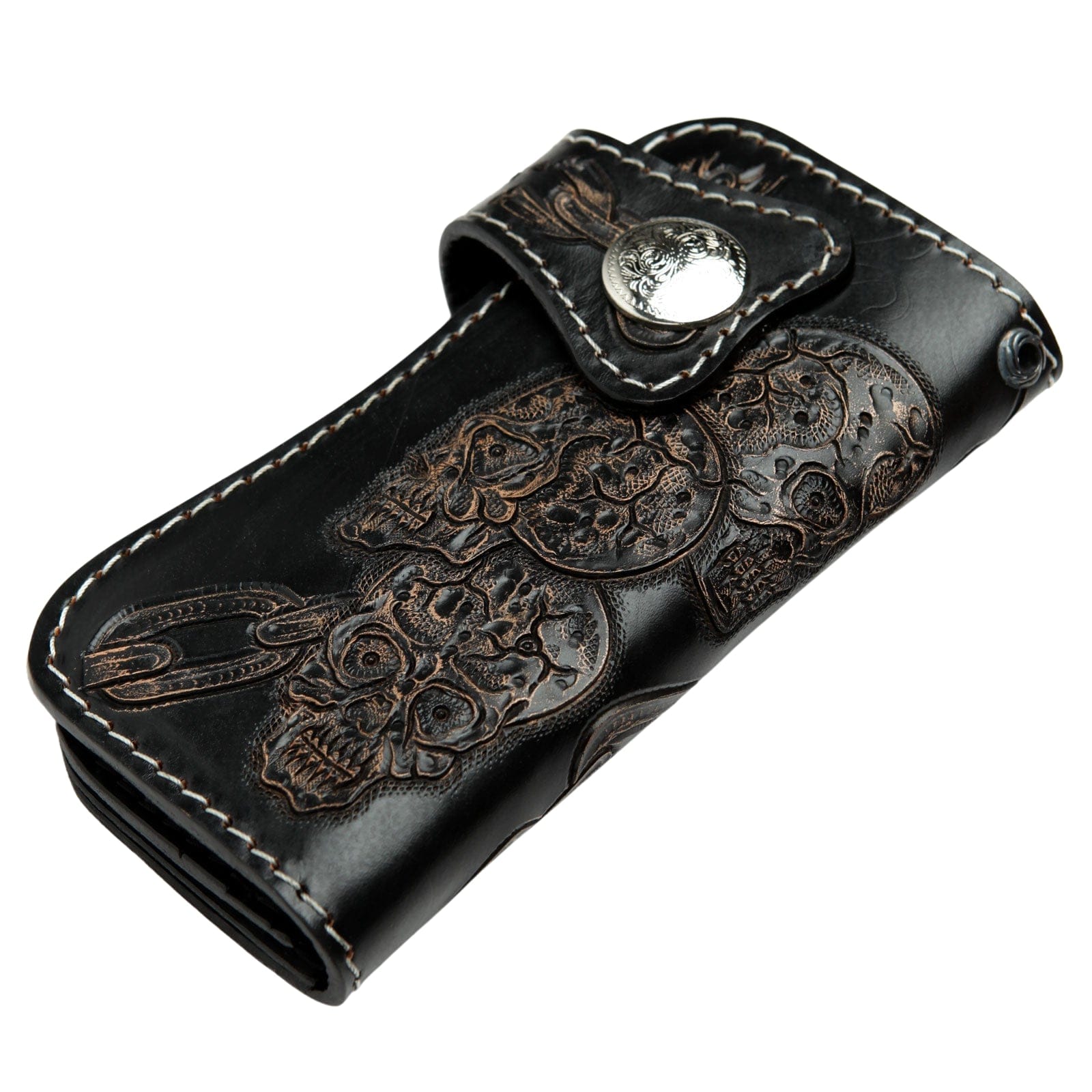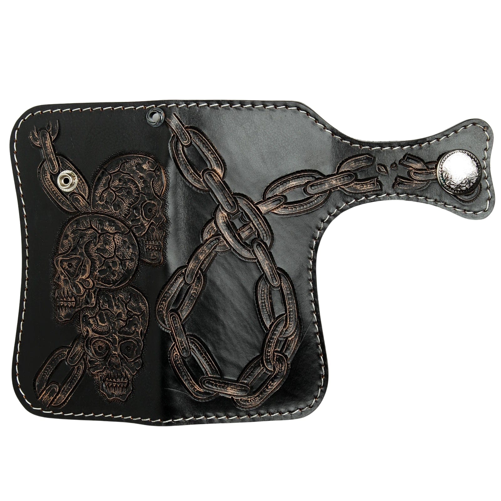 手彫りレザー チェーンドスカル バイカーウォレット