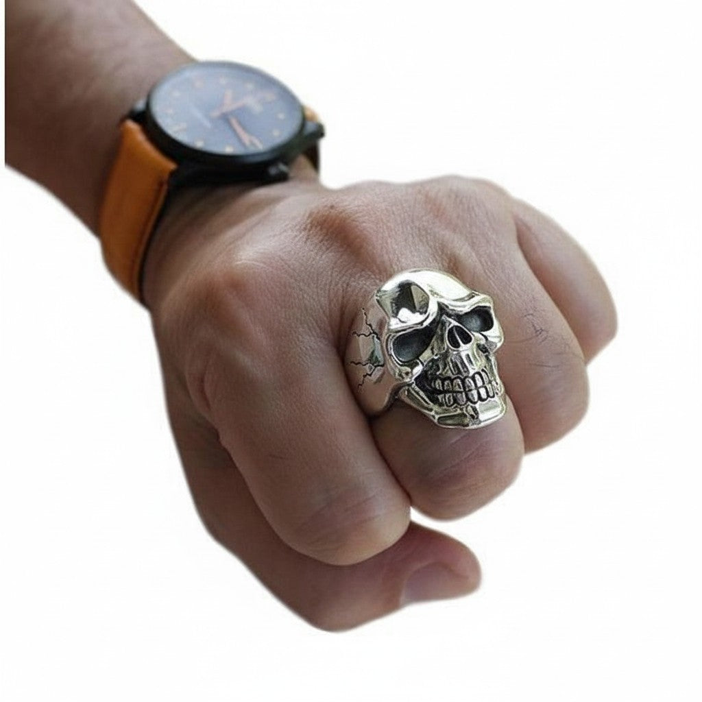 これは陰鬱な恐怖の象徴ではなく、洗練された反逆のエンブレムです。重厚なハンサムスカルリングは、ミニマルなデザインの傑作であり、クラシックなスカルを最も力強く、エレガントな形にまでそぎ落としています。ずっしりとしたソリッドスターリングシルバーから鍛造され、完璧な輝きに磨き上げられたこのリングは、静かな自信と揺るぎない力で場を支配する男のためのものです。
