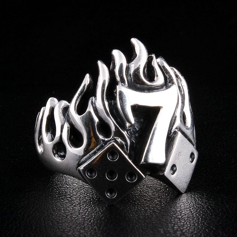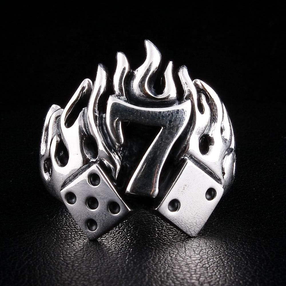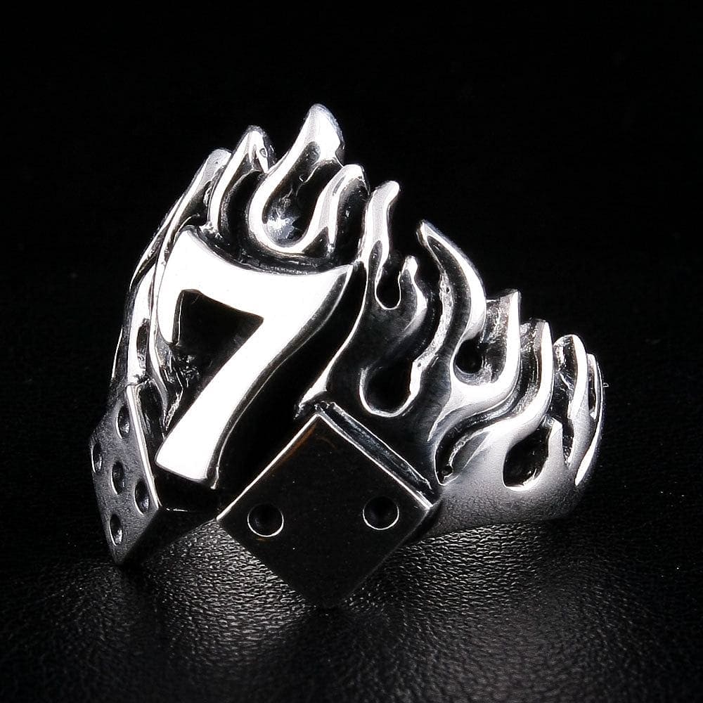 ナンバー7 フレイムダイスリング – スターリングシルバー ギャンブルバイカーリング