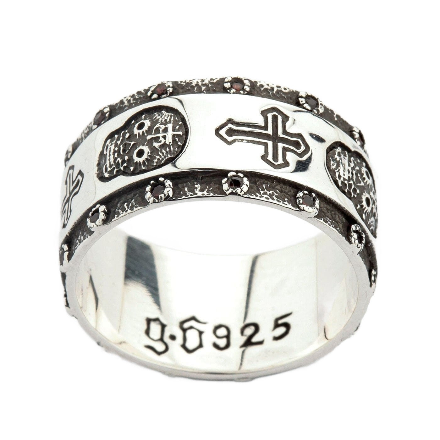 デザイン全体を囲むのは、生命力と情熱を象徴する深紅のガーネット天然石。これは単なるリングではなく、彼女の強力な守護のもとで生きる人生の証です。ユニークなゴシックジュエリーであり、現代の宗教ジュエリーの力強い一例として、職人技と深い信仰心を体現しています。