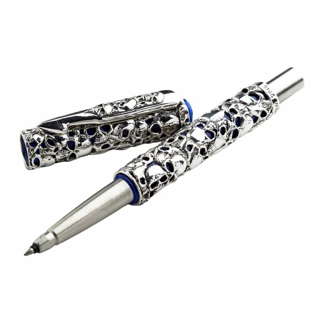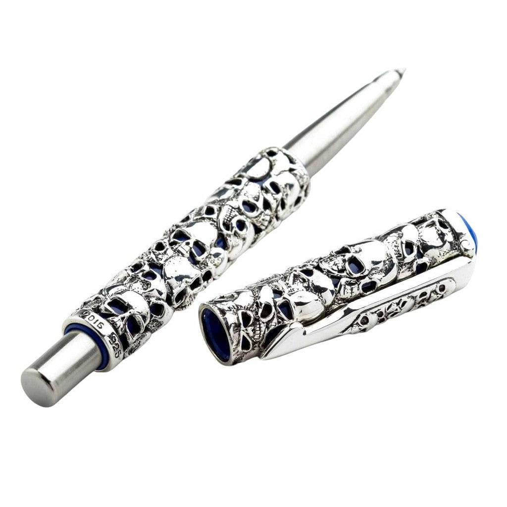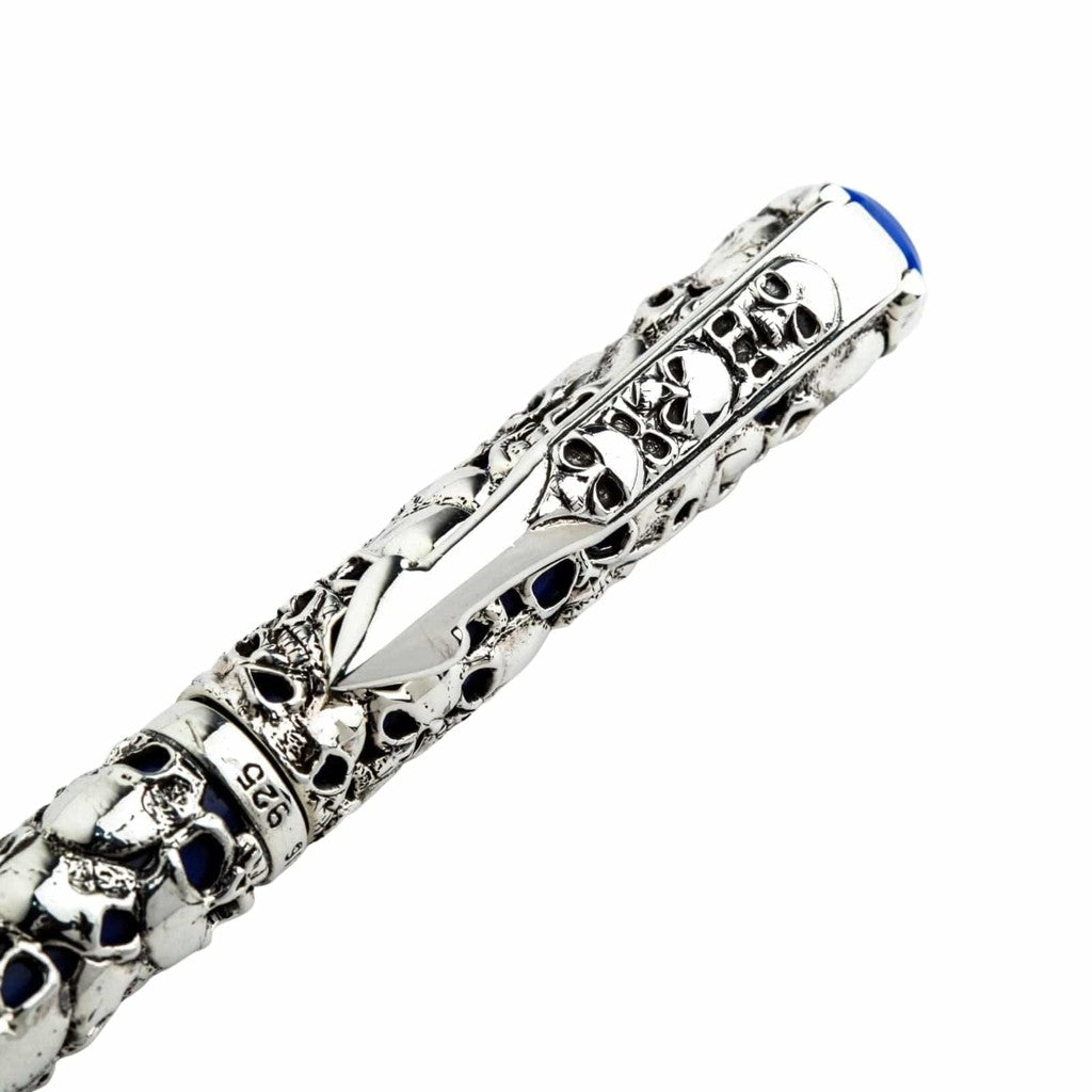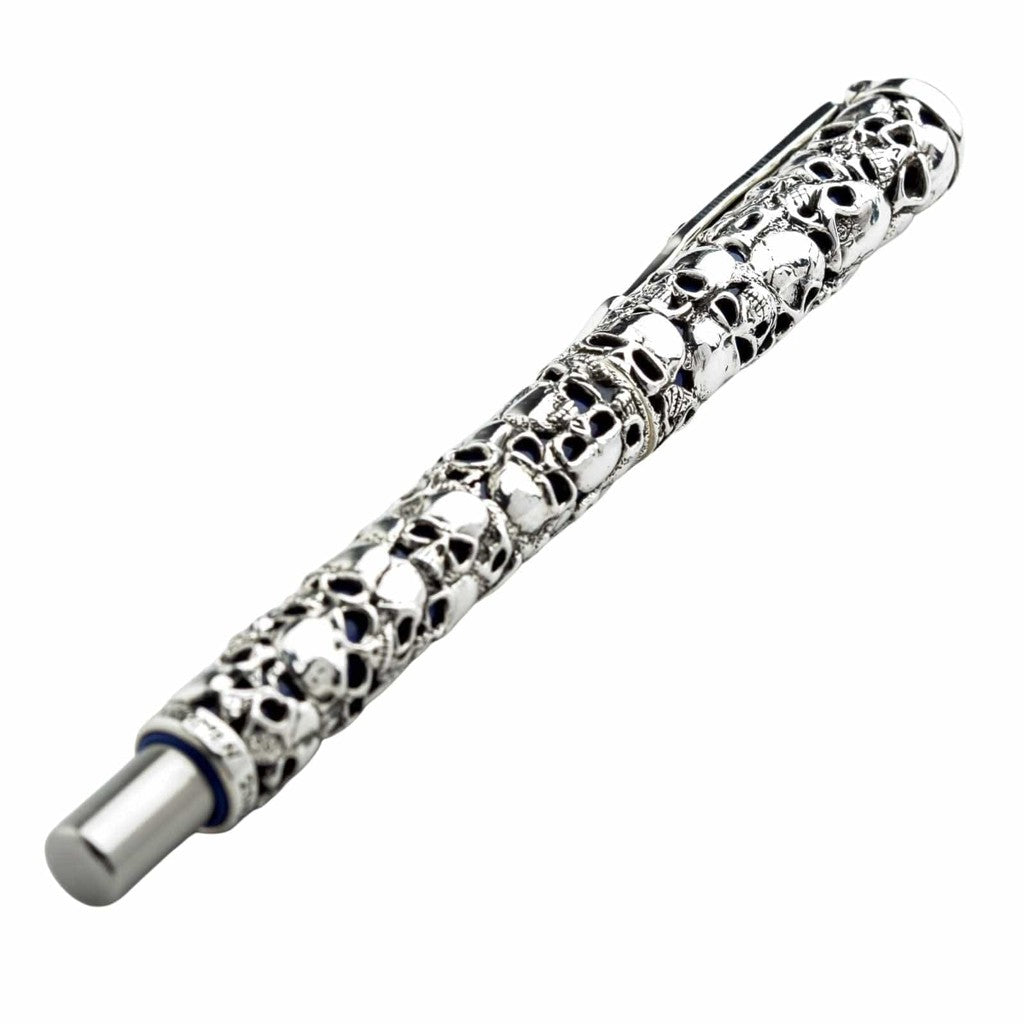 💀 スカル彫刻 925スターリングシルバーペン – ゴシックな優雅さと高級筆記具