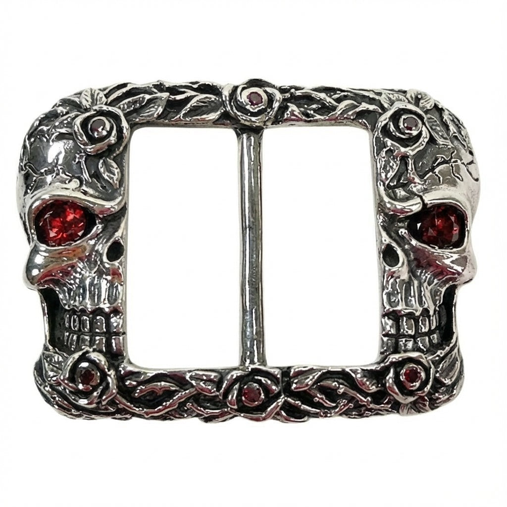 スカルとローズのスターリングシルバー・バイカーベルトバックル