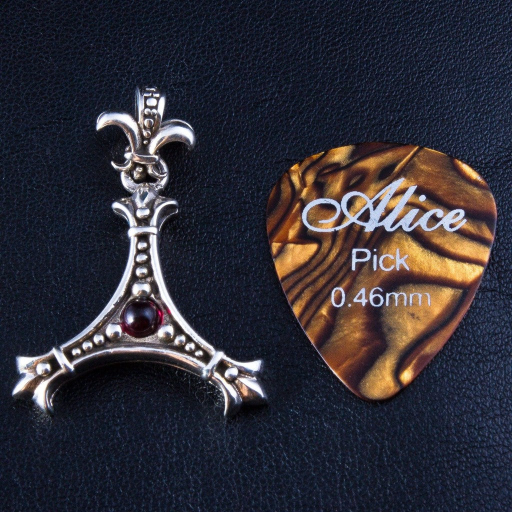 플뢰르 드 리스 스털링 실버 기타 피크 홀더 펜던트