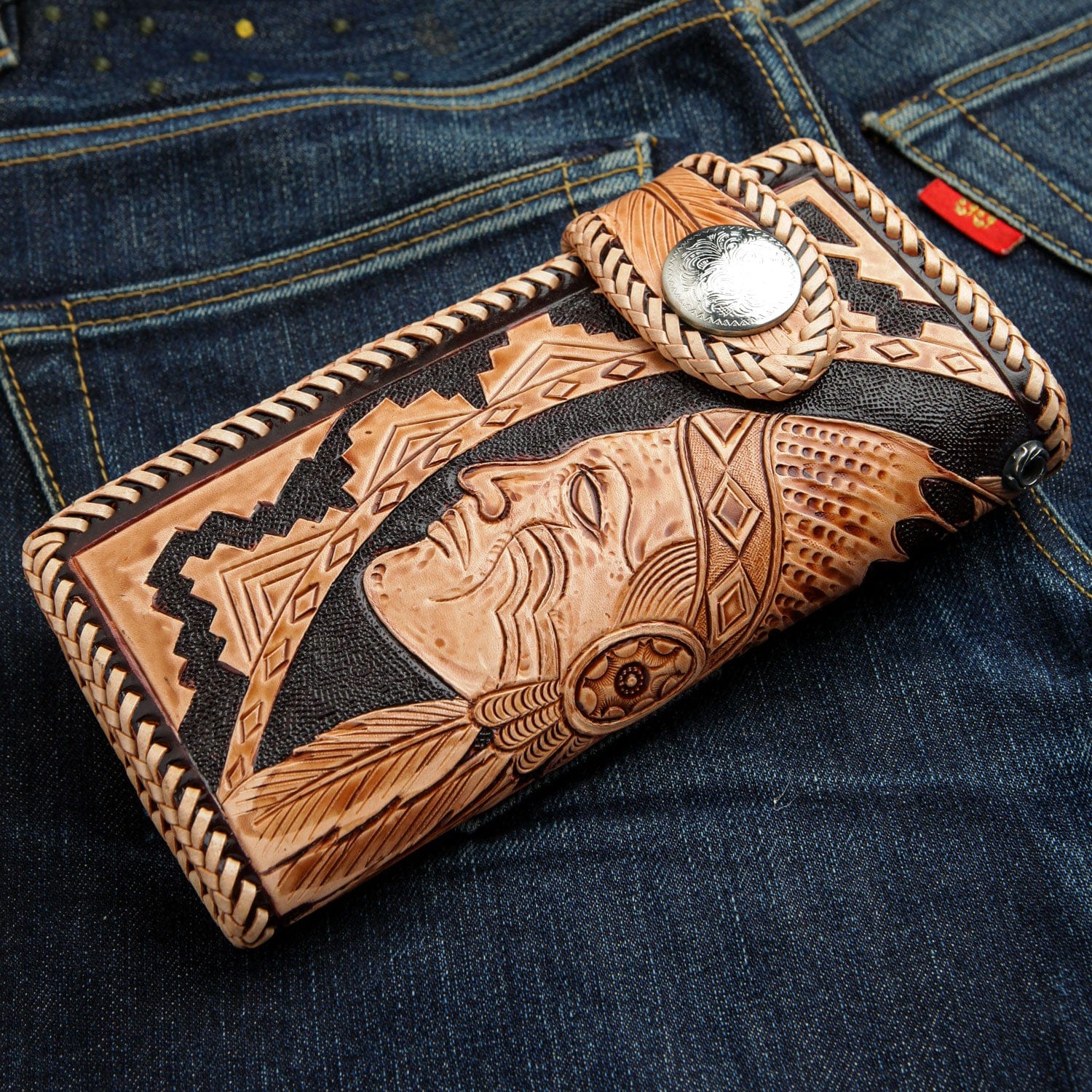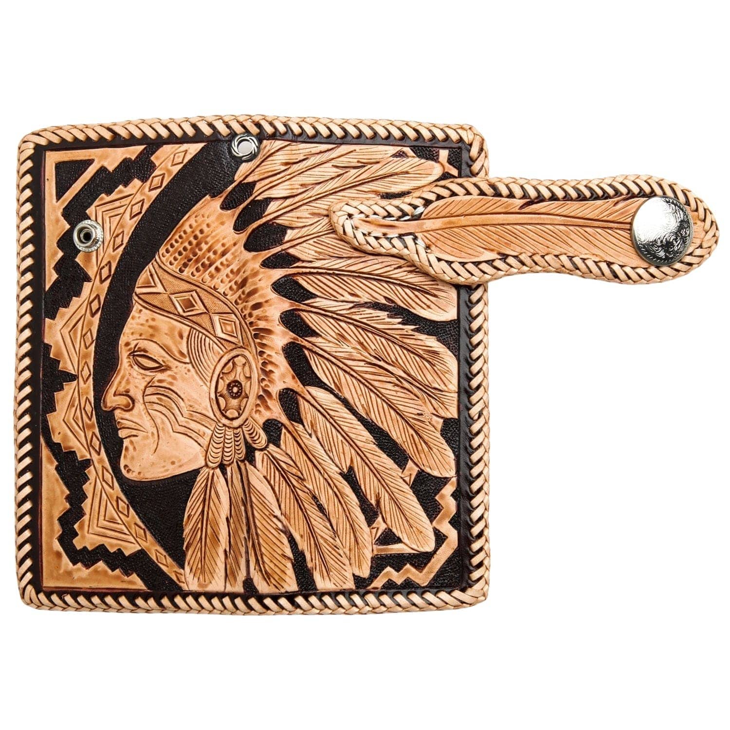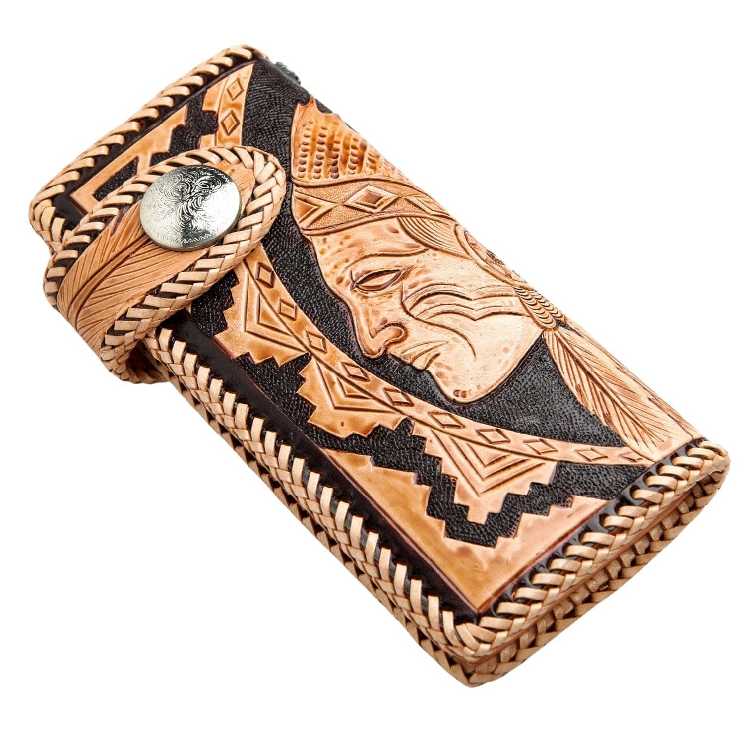 수제 조각 아메리칸 인디언 추장 가죽 바이커 지갑