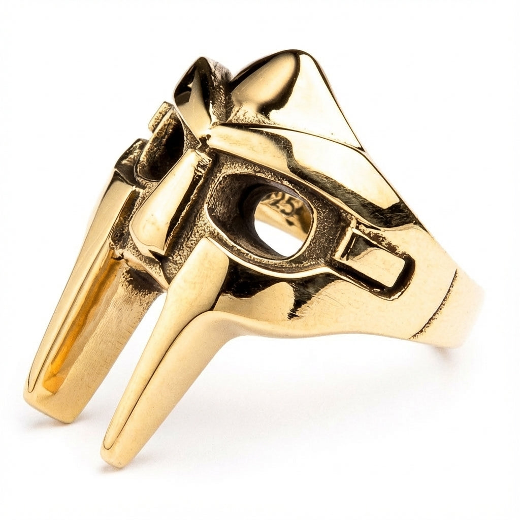 Q: 이 마스크의 디자인은 무엇을 기반으로 하나요? A: 이 마스크는 2000년 영화 글래디에이터에 등장하는 소품 헬멧에서 영감을 받았습니다. 로마 검투사의 투구 스타일로, 이 제품이 때때로 글래디에이터 반지로 불리는 이유입니다. MF DOOM이 이를 자신의 상징으로 삼아, 힙합 역사상 가장 아이코닉한 심볼 중 하나로 자리잡았습니다.