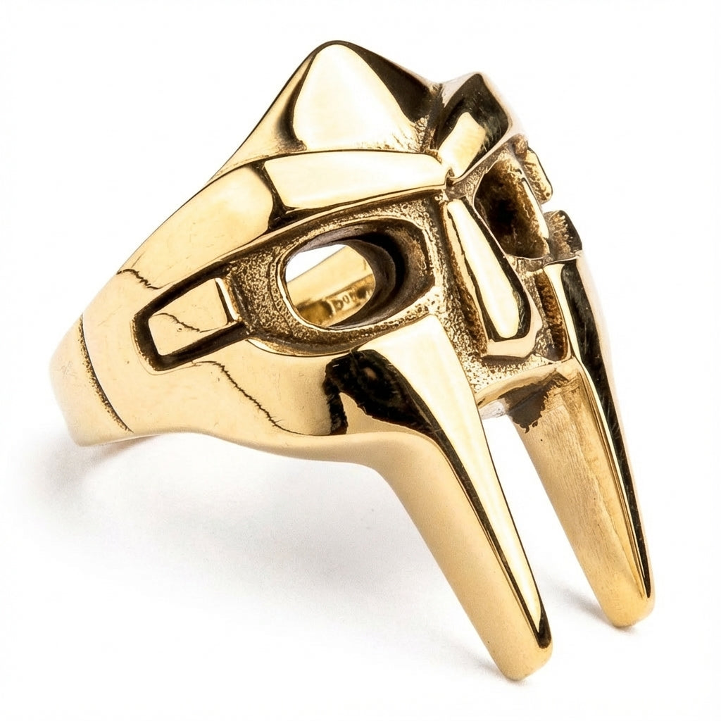 Q: MF DOOM이 왜 마스크를 썼나요? A: MF DOOM은 자신만의 '슈퍼빌런' 페르소나를 완성하고, 예술과 개인의 정체성을 분리하기 위해 마스크를 썼습니다. 그는 외모가 아닌 오직 랩 실력과 음악으로만 평가받고 싶어했습니다. 이 MF Doom 마스크 반지는 그런 강렬한 예술 철학에 바치는 오마주입니다.