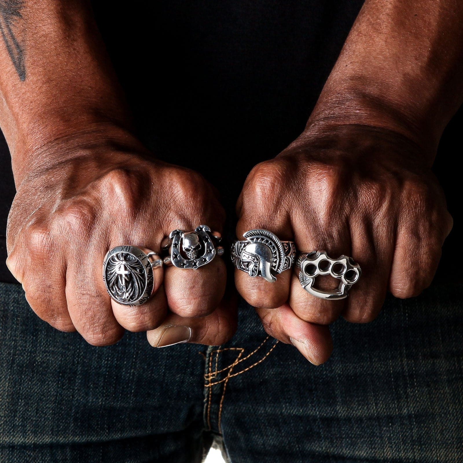 2. 이 반지는 무거운 은반지인가요? 네, 맞습니다. 약 25그램의 무게로, 이 반지는 매우 무겁고 존재감 있는 스테이트먼트 반지입니다. 크고 의미 있는 주얼리의 단단하고 강렬한 느낌을 선호하는 분들을 위해 제작되었습니다.