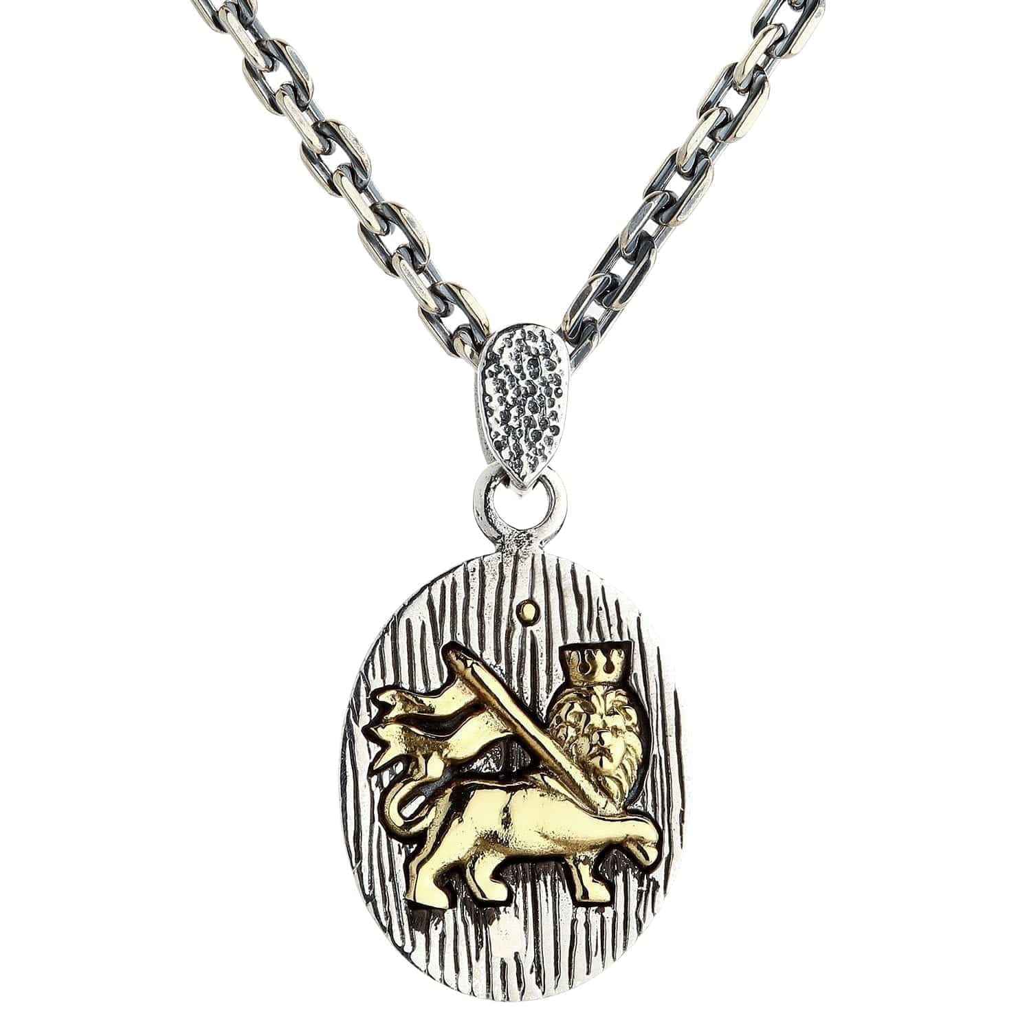 Draai de hanger om en ontdek de majestueuze Leeuw van Juda, het krachtige embleem van de Ethiopische monarchie, Haile Selassie en de Koning der Koningen. Deze koninklijke leeuw, compleet met kroon en scepter, is een diep symbool van kracht, moed en Afrikaanse trots. Het hele stuk is vakkundig met de hand vervaardigd uit massief sterling zilver met rijke messing accenten, en hangt aan een fonkelend, met CZ-bezette hanger. Ontdek meer betekenisvolle stukken in onze Rasta Sieraden collectie.