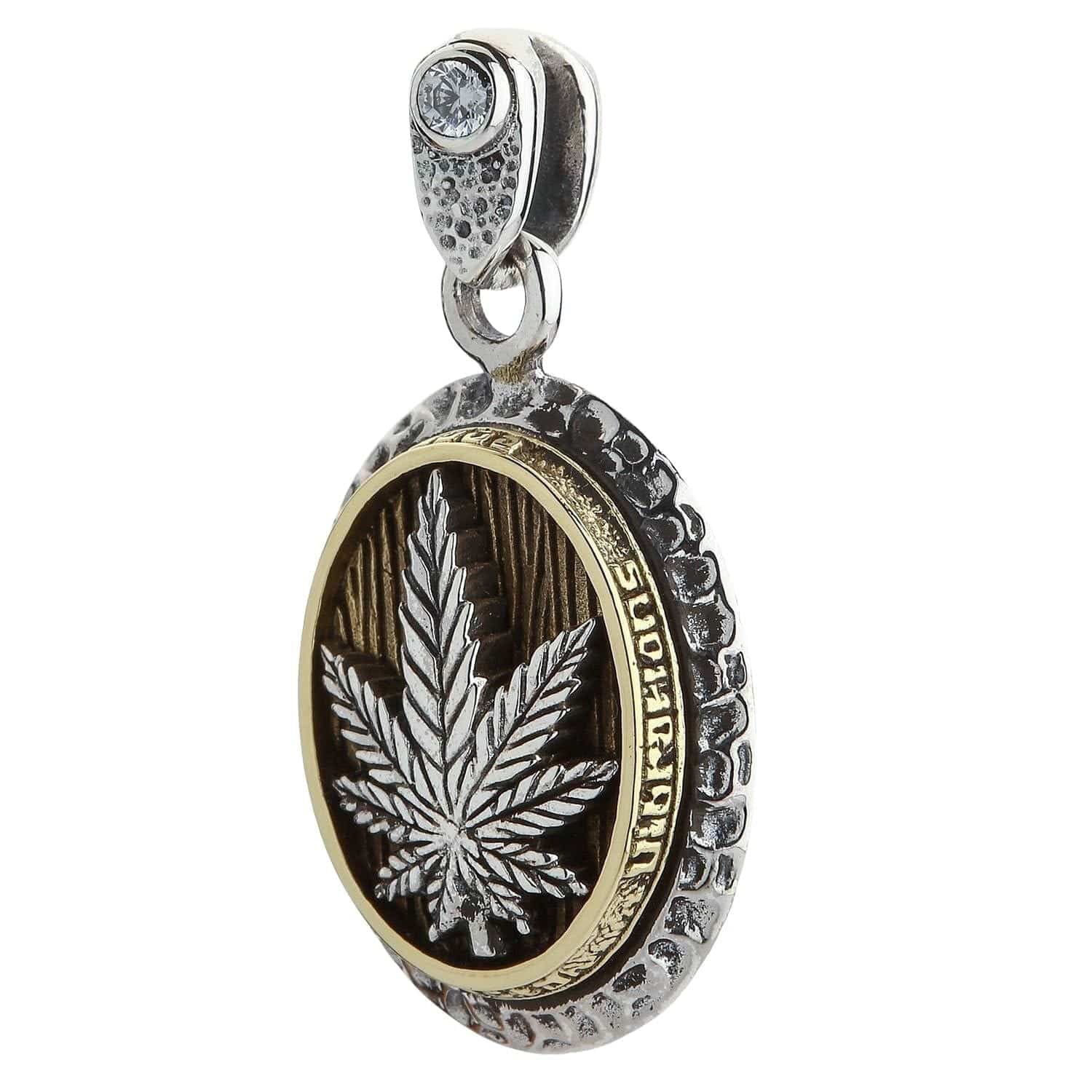 🔄 Uniek Omkeerbaar Ontwerp: Een slimme dubbelzijdige hanger met aan de ene kant een cannabisblad en aan de andere kant de Leeuw van Juda.