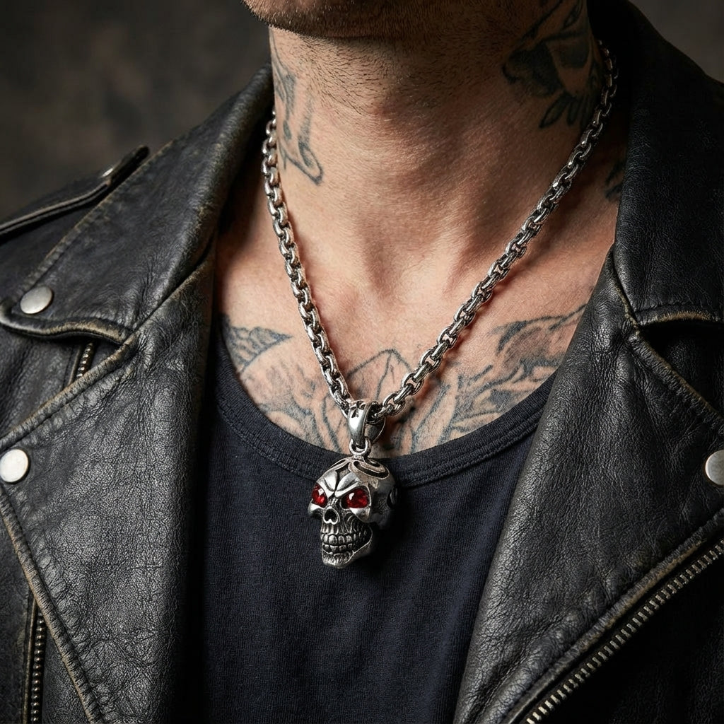 2. Zijn de stenen in deze hanger echte granaat? Ja, de ogen zijn gezet met echte, hoogwaardige granaatstenen. Ze zijn geslepen om het licht te vangen, waardoor de blik van de schedel een diepe, vurige schittering krijgt die dit stuk onderscheidt van exemplaren met synthetische stenen.