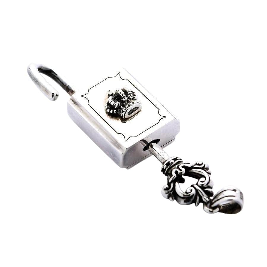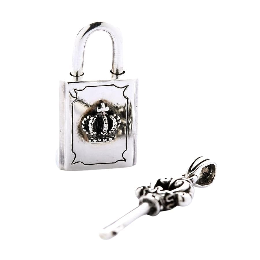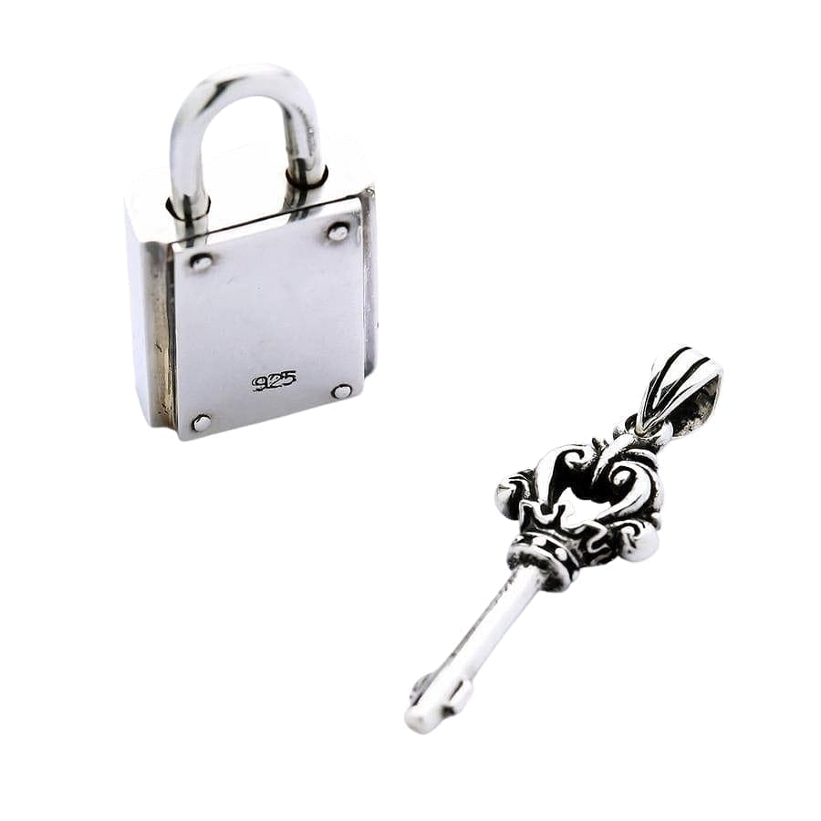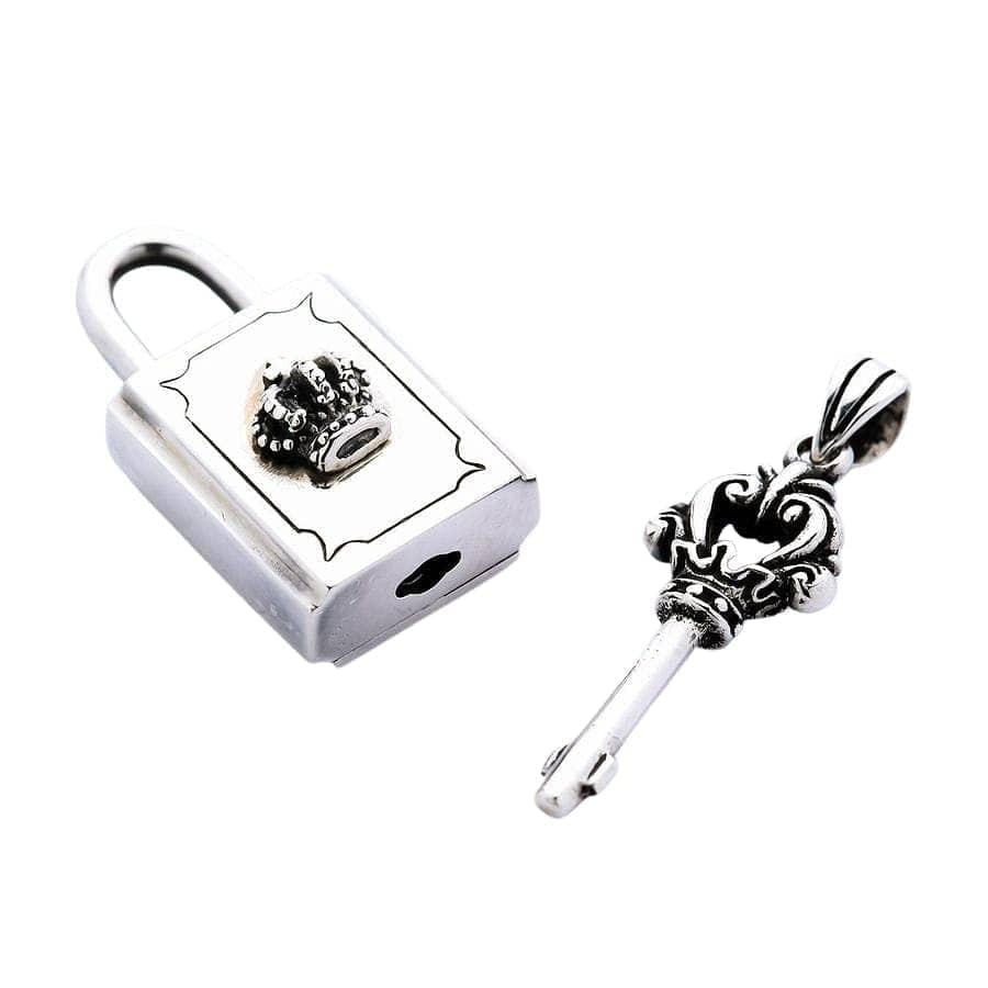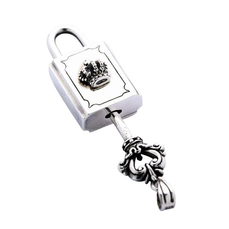 Deze set bestaat uit twee meesterlijk vervaardigde, losse hangers. Het hangslot is een fors stuk massief zilver met op de voorkant trots een koninklijk kroonembleem, symbool voor een liefde die soeverein en oprecht is. De bijbehorende sleutel is minstens zo mooi, met een sierlijk, gotisch ontwerp dat perfect is om een gekoesterd geheim te ontsluiten. Wat deze set echt bijzonder maakt, is dat het slot volledig functioneel is en alleen de bijgeleverde sleutel het kan openen. Dit interactieve ontwerp maakt van de set een krachtig symbool van een unieke band. Draag beide stukken samen voor een gedurfde uitstraling, of deel de set met je geliefde—de één draagt het slot, de ander de sleutel—als ultieme uiting van vertrouwen en trouw.