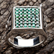 Vierkante opstelling van 36 smaragdgroene Cubic Zirconia stenen die prachtig schitteren en een luxe uitstraling creëren.