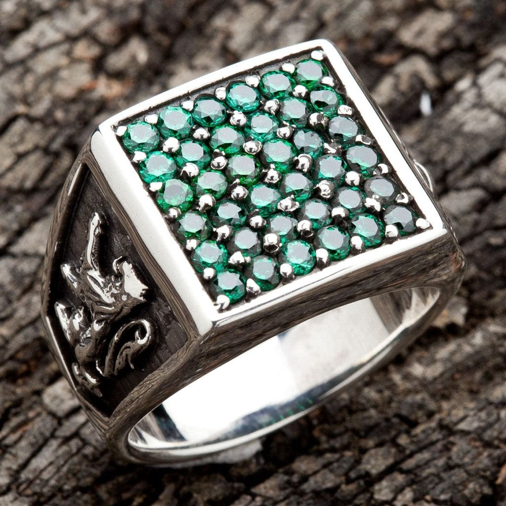 Emerald Eagle Lion Army Sterling Zilveren Ring