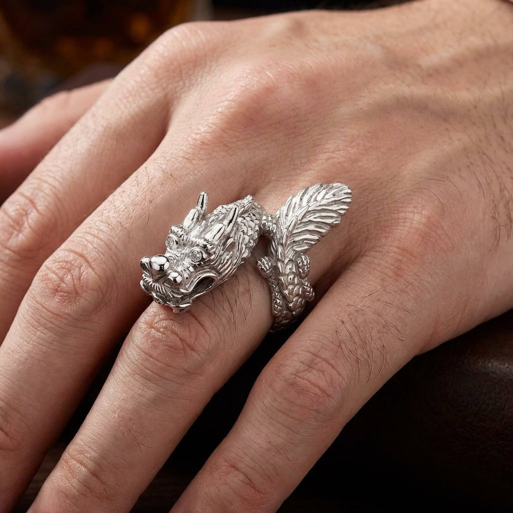 Perfekt for fantasyfans, entusiaster av biker-smykker eller alle som setter pris på håndlaget kvalitet – denne ringen er en minneverdig gave til bursdag, jubileum eller spesielle anledninger.
