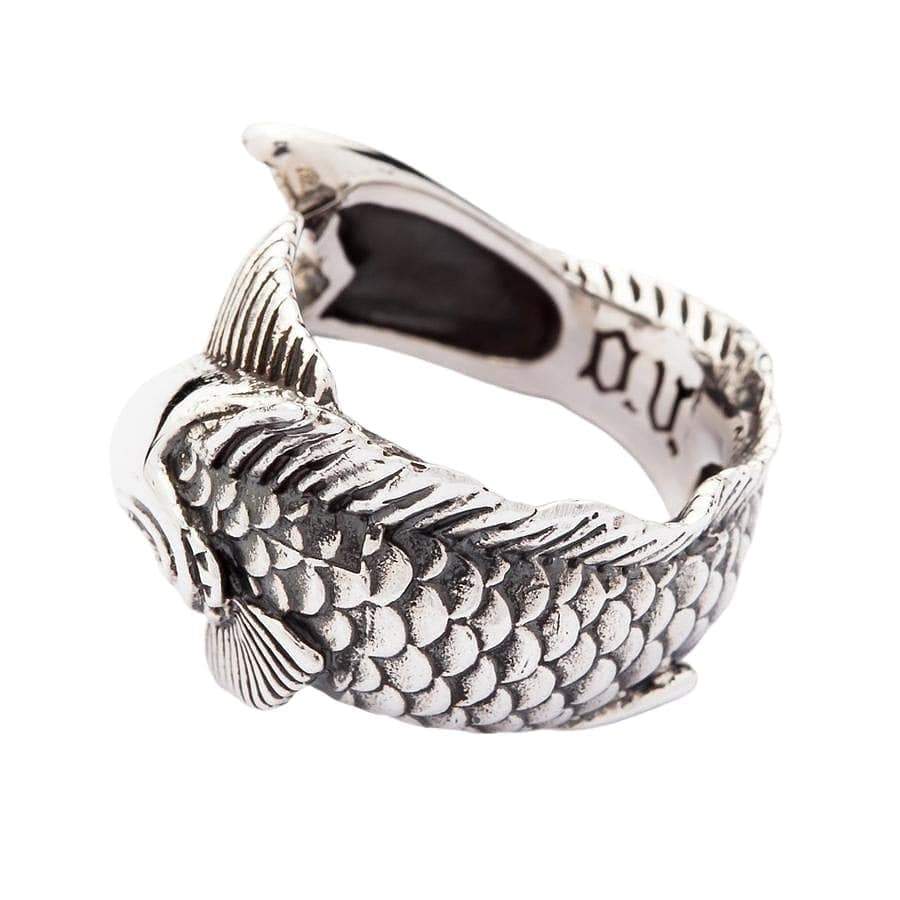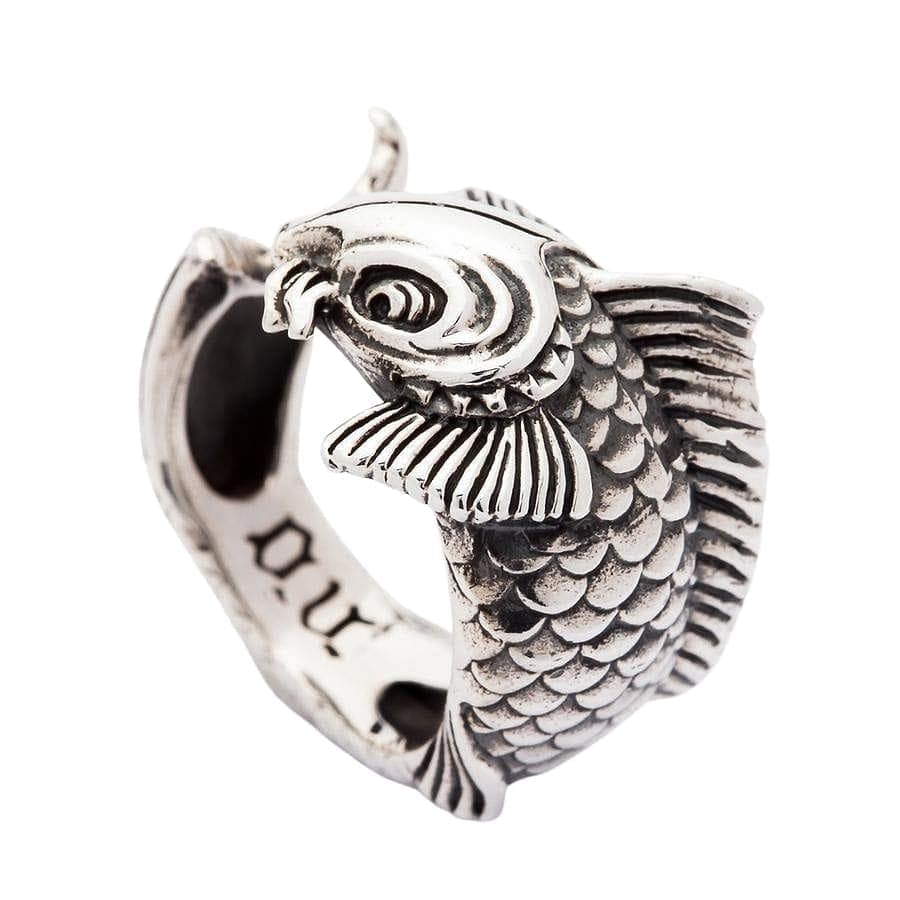🐟 Symbolsk koi-karpedesign: En japansk koi-karpe som elegant slynger seg rundt fingeren, og symboliserer styrke, utholdenhet og lykke.