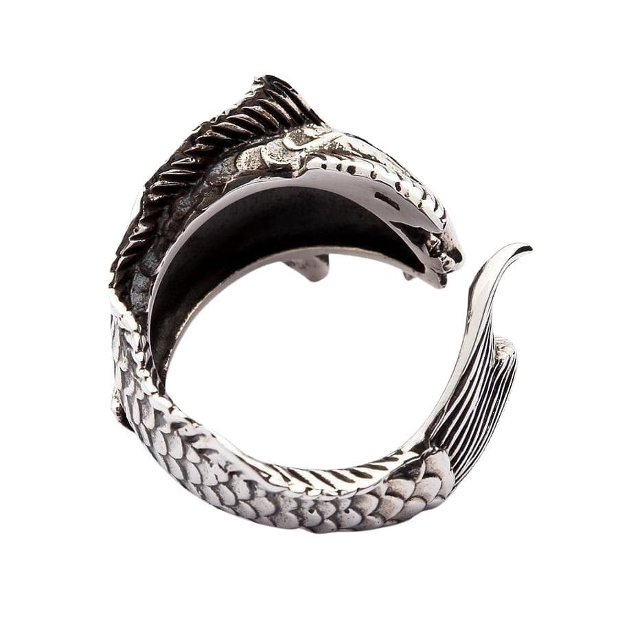 I japansk mytologi er Koi-fisken (eller japansk karpe) kjent for sin utrolige utholdenhet. Det sies at Koi viser stor styrke og mot ved å svømme mot strømmen mot alle odds. De få som når det mytiske ‘drageporten’ blir belønnet med forvandling til en mektig drage. Denne wrap-ringen fanger den kraftfulle reisen, med Koifiskens hode og hale som møtes i en sirkel av viljestyrke.
