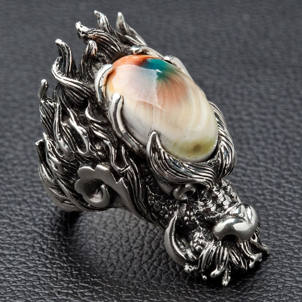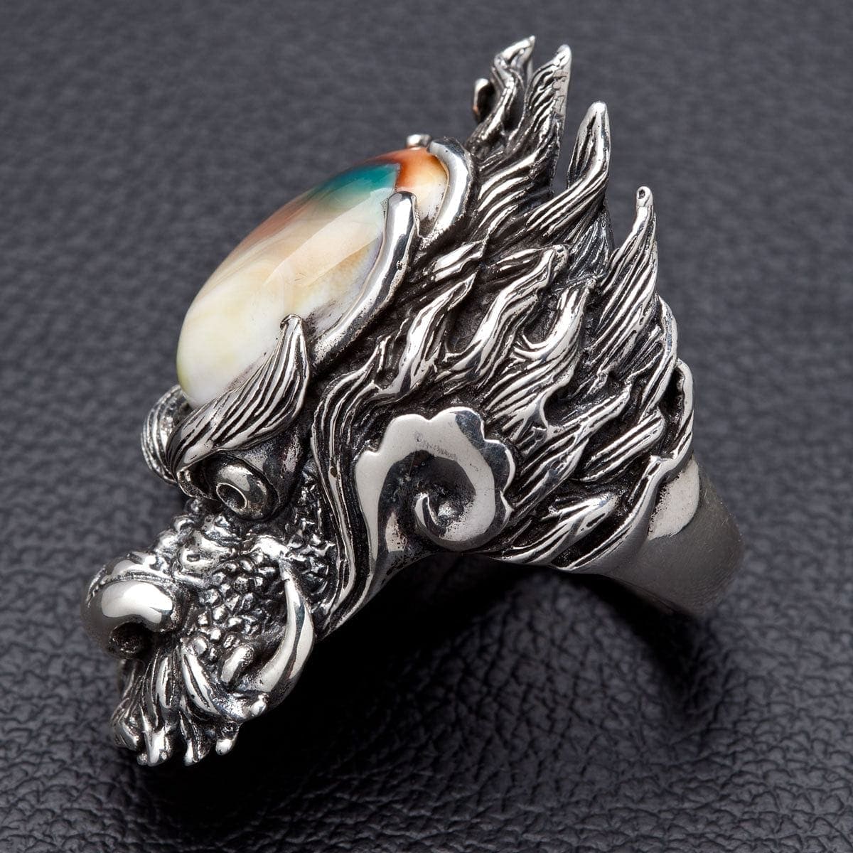 Massiv Sterling Sølv Dragehode-ring med Shiva-skjell