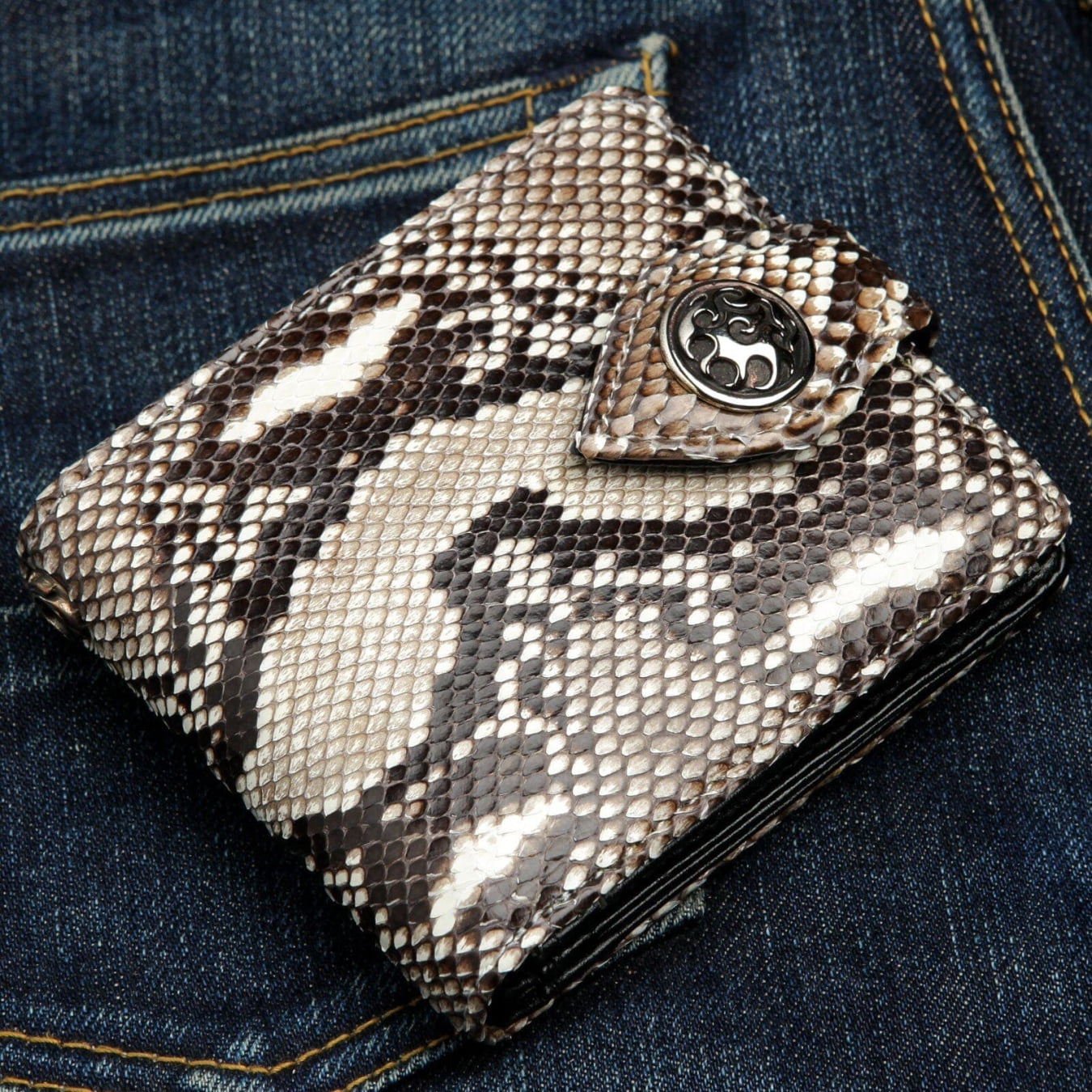 Portfel motocyklowy z prawdziwej skóry węża kobry