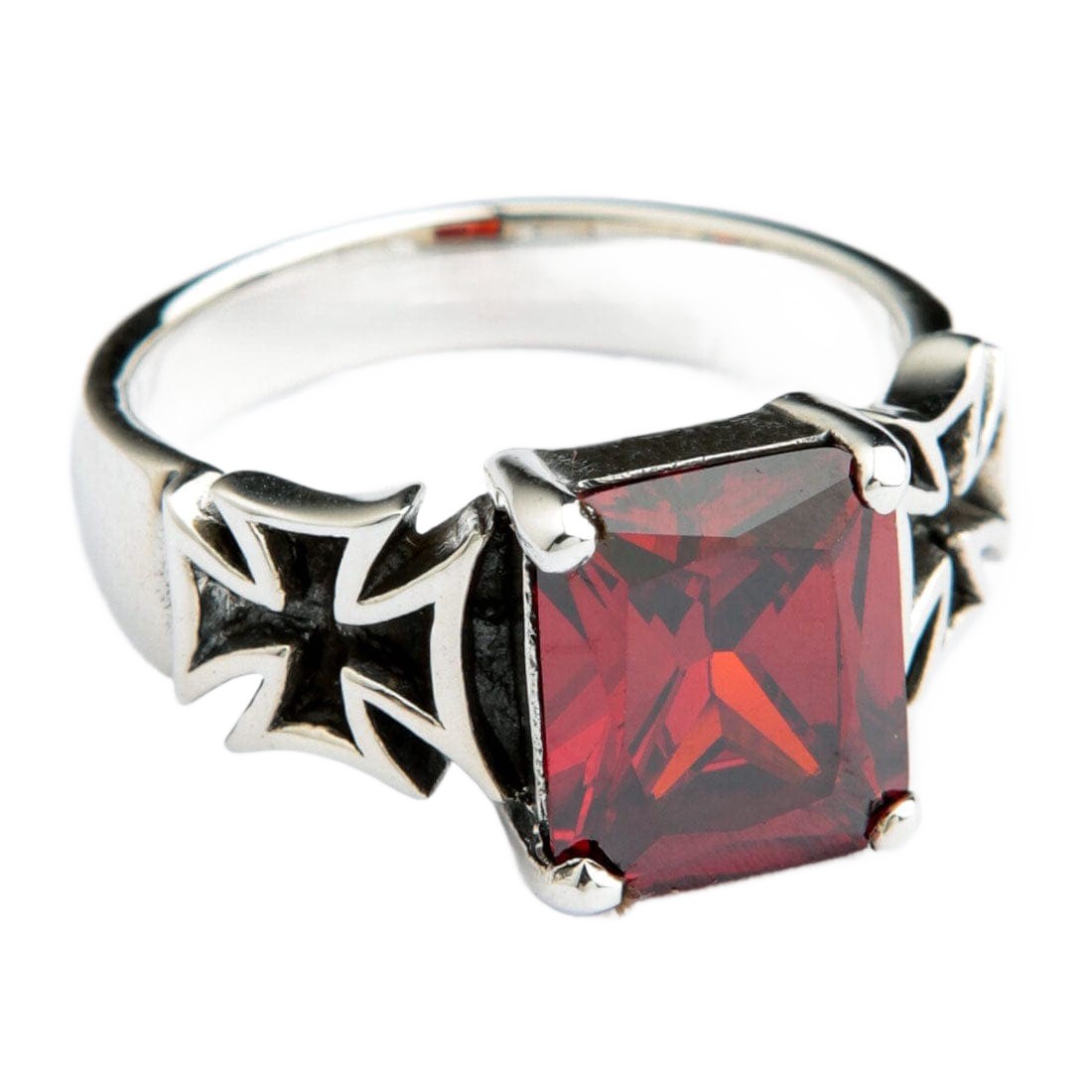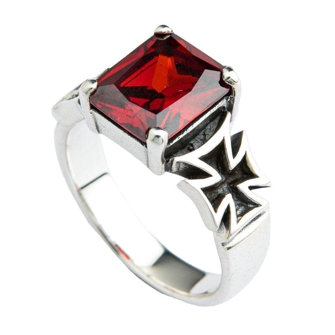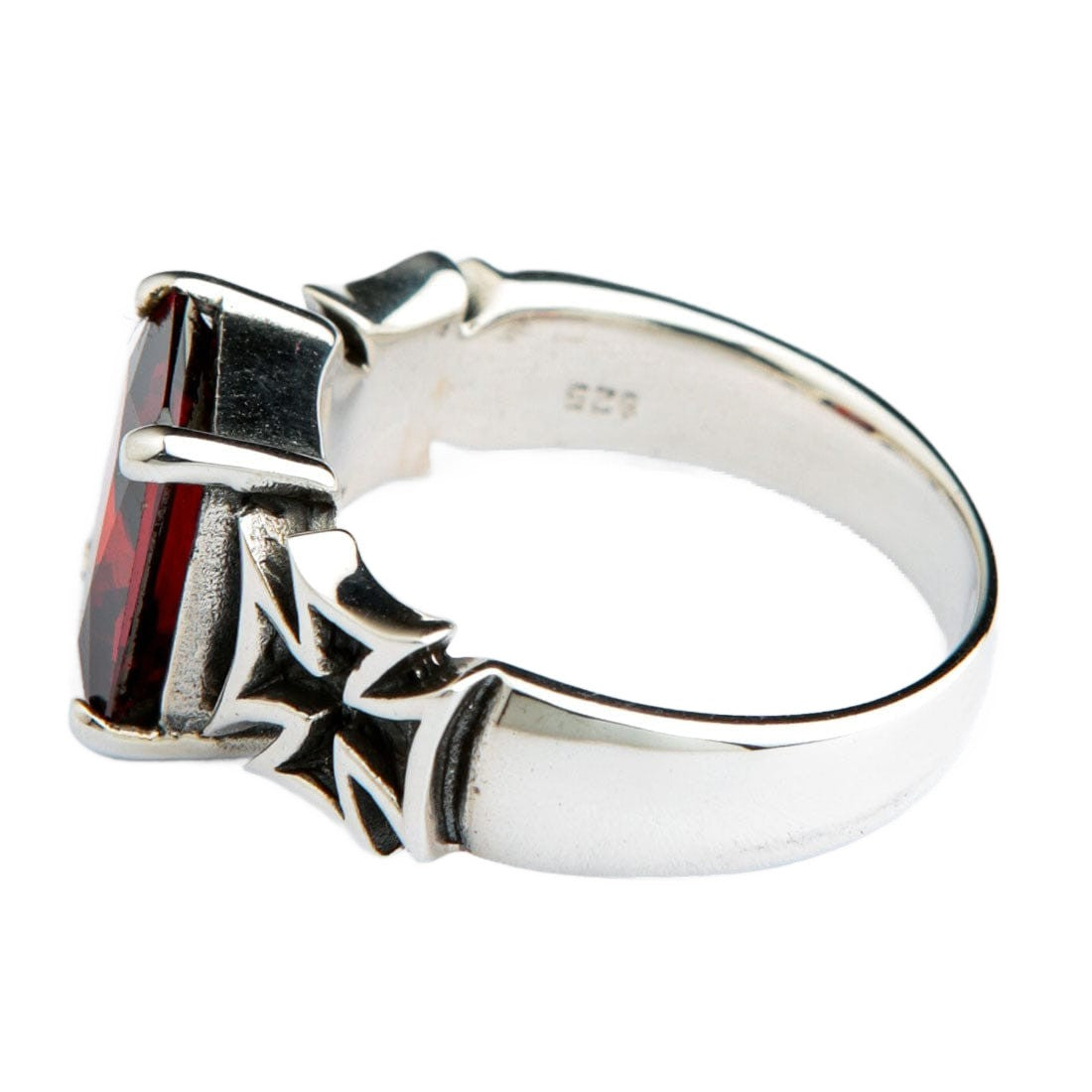 Pierścionek ze srebra Sterling z czerwonym granatem i żelaznym krzyżem