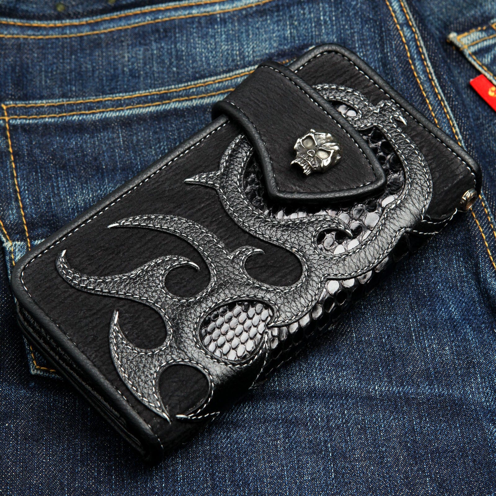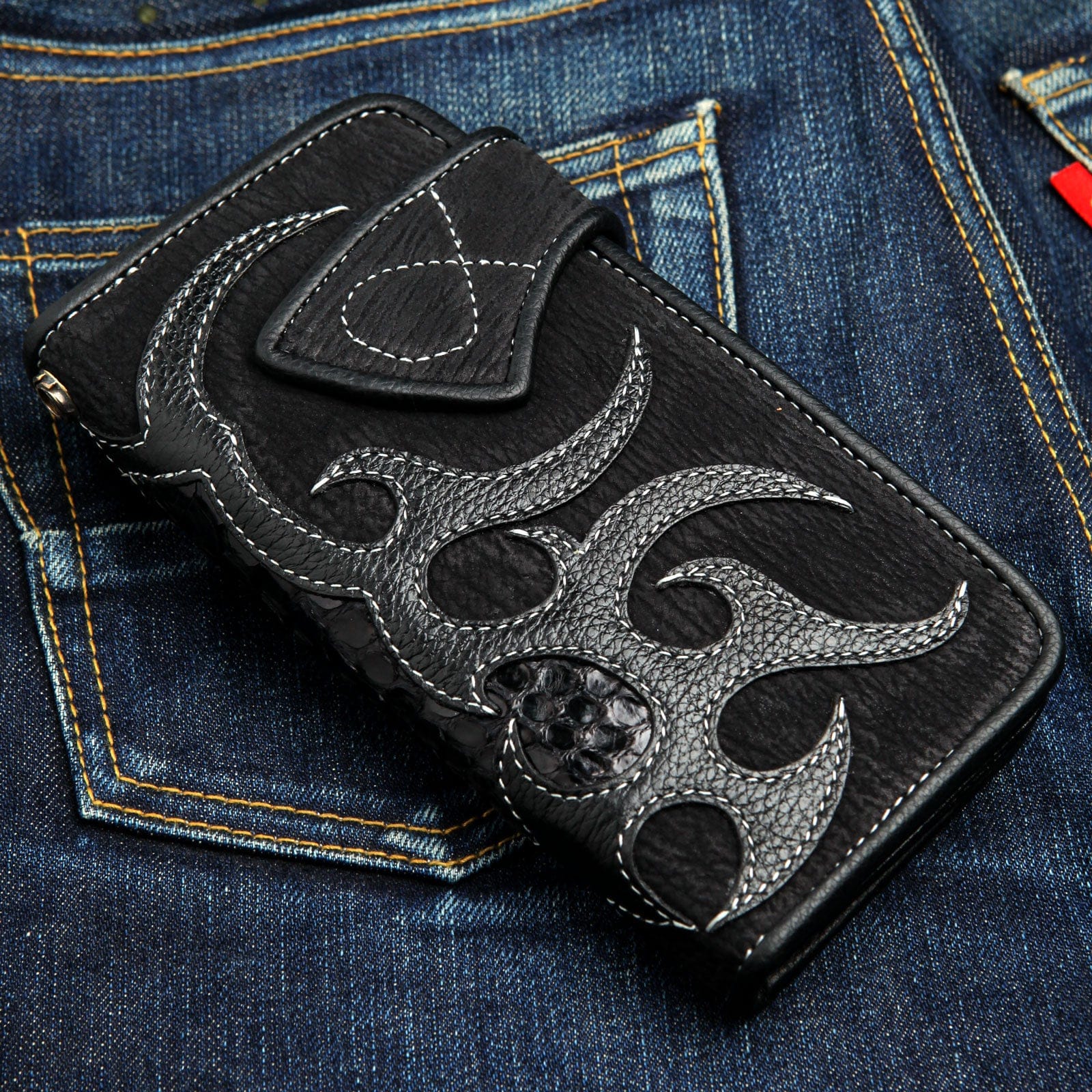 Portfel motocyklowy ze skóry rekina i jaszczurki Flame – oryginalna skóra.