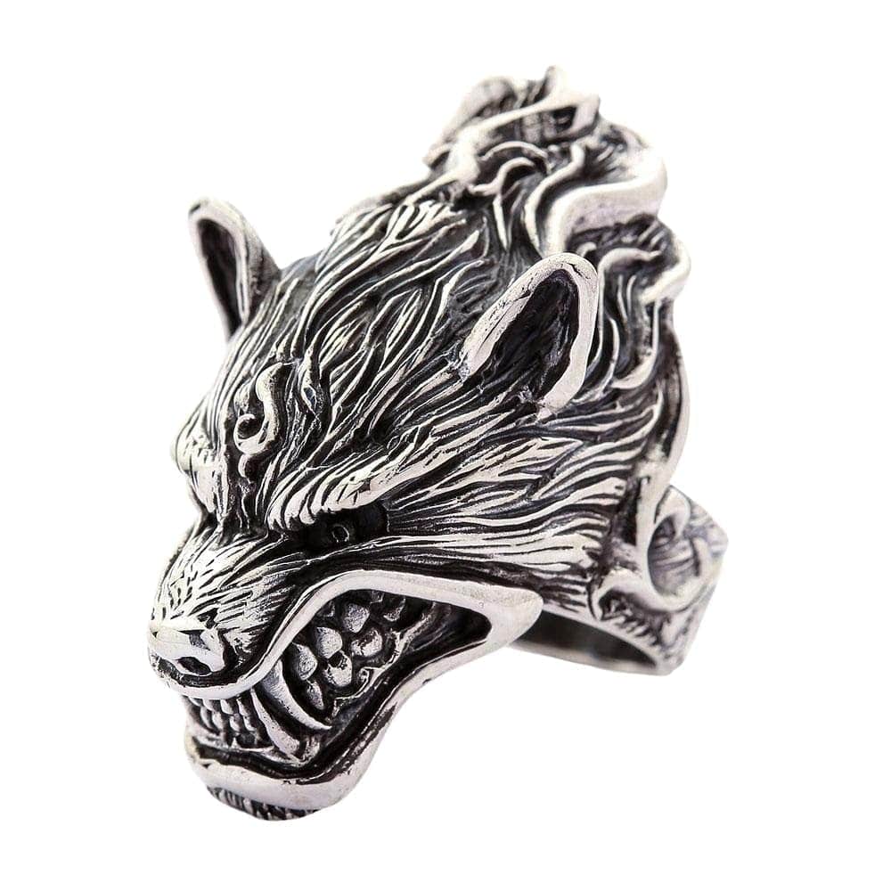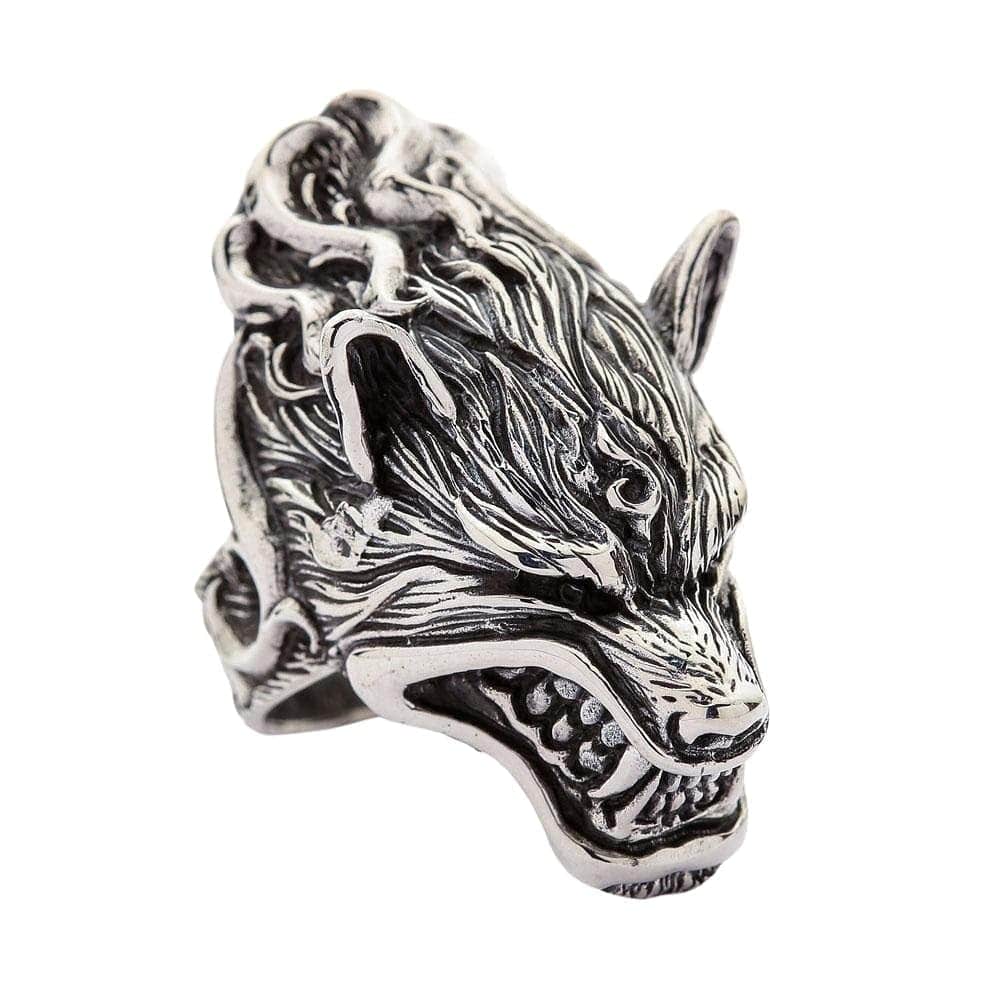 Pierścień Wilkołaka – Srebrny pierścień z głową wilka, próba 925